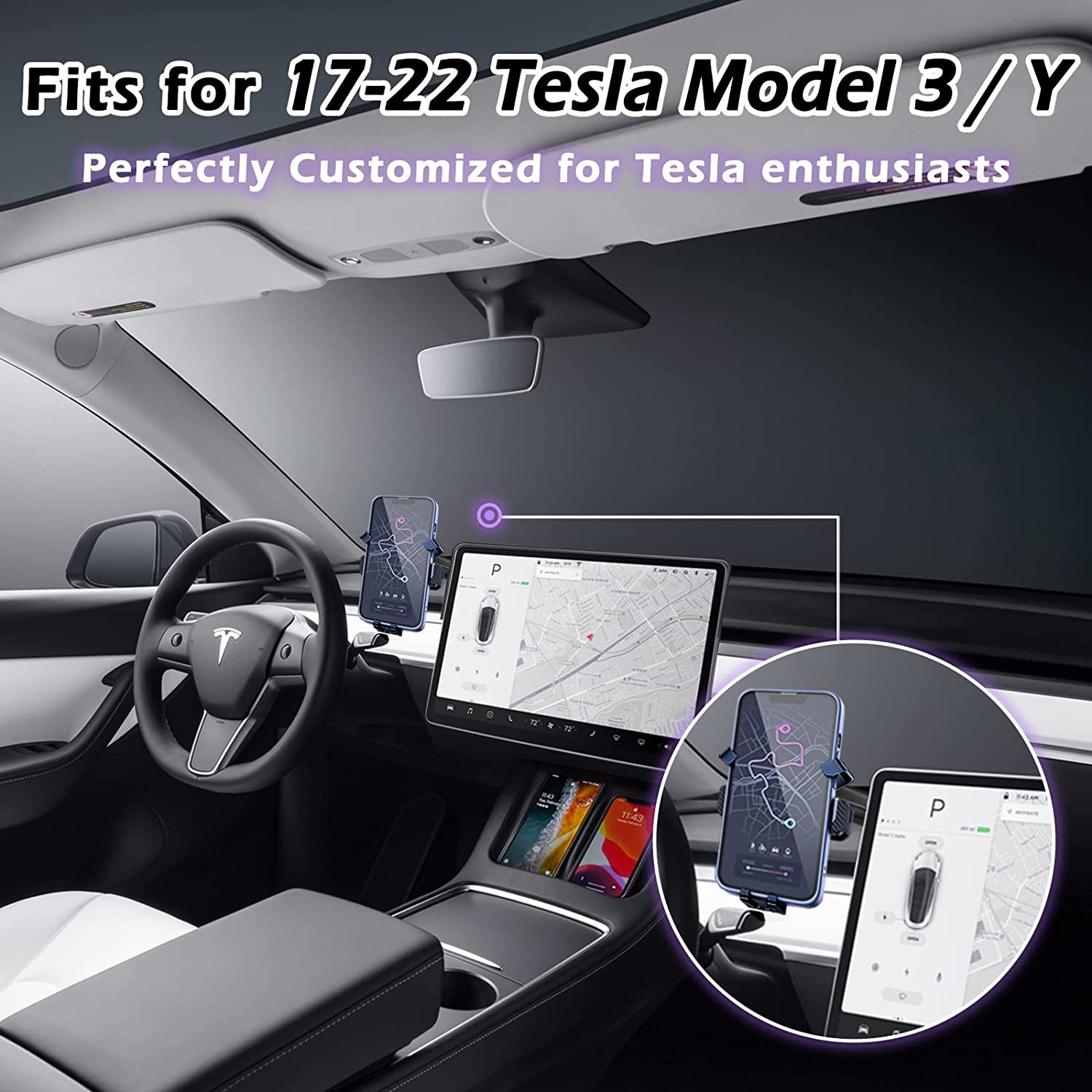 ?【Enthusiast Custom】: The monitor LED screen case size is specially customized according to the actual screen of the Tesla Model 3 and Y. Easy to install and perfectly matches the phone holder. The phone mount is suitable for smart phone size: 5-6.8 Inches, and fits all Model 3 2017-2022 & Model Y 2019-2022. ?【One-Hand Operation】: You only need one hand to take out or place your phone on the Tesla phone mount. Custom "X" holder design allows you to mount your phone in just a second, pick up / put down very easy to use. One-hand operation let you NO NEED to take another hand off the steering wheel to use the phone which may cause traffic accidents, 4TSL brings you a safer driving experience. ?【360° Free Adjustment】: Upgrade to an extended robotic arm that can be adjusted 360% freely, so that it will not block the speed display on the LED screen. Two extra free arms are included, so the cellphone mount can be installed anywhere on the left and right sides of the monitor case according to your preference. ?【Stable & Silent】: The Tesla phone holder has been added with aluminum alloy, which is sturdy and not easy to break and has more texture. With four claws, there are soft silicone cushions to clamp the phone more tightly (not hurt your phone), and it can be stable and silent even while driving on a pothole road. There is a connection gap at bottom of the phone mount, which is convenient for connecting the charging cable to your phone. ?【30/1/24 Service】: 30-day return, one-year warranty, 24-hour customer service. 4TSL Do by Heart always provide you with natural & premium quality and attentive service. ❗❗ NOTE 1: The two ends of the connection of the robotic arm can be adjusted 360°. When you need to fix it, please be sure to tighten the connection to ensure that it does not shake during driving. ❗❗ NOTE 2: It's normal that different viewing angles will slightly block the LED screen, because the longer robotic arm will cause the stand to shake during driving. 4TSL has already led the market in terms of the phone mount not blocking screen.