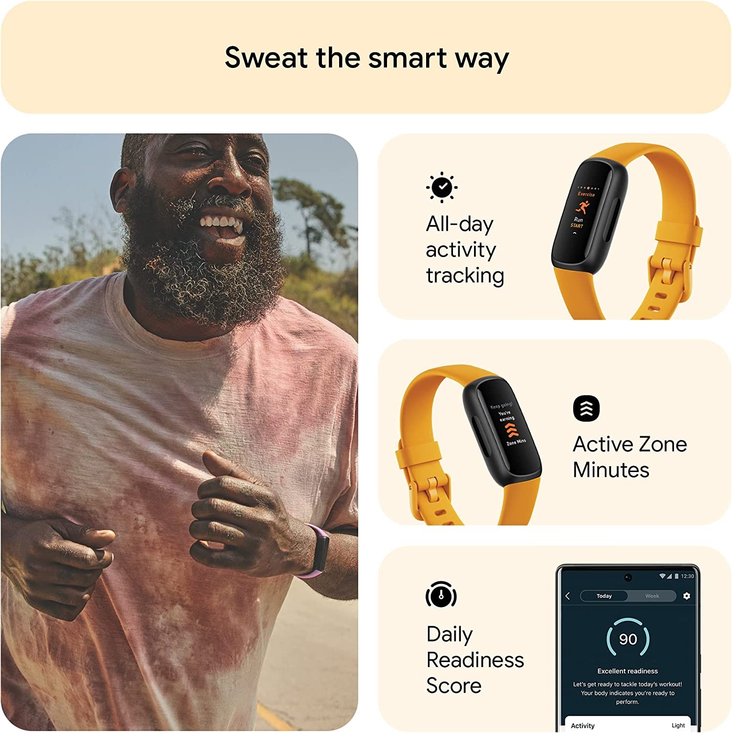 Fitbit Inspire 3 Health & Fitness Tracker with Stress Management, Workout Intensity, Sleep Tracking, 24/7 Heart Rate and more, Morning Glow/Black, One Size (S & L Bands Included)