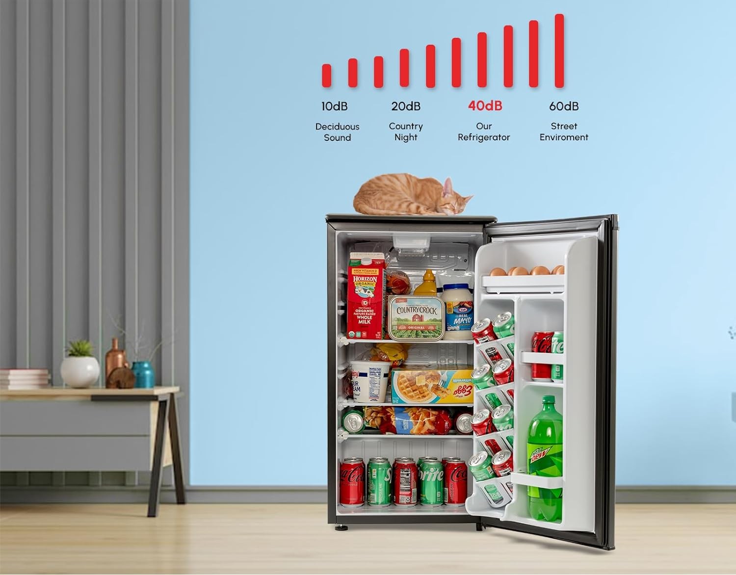 roomwell 3.3 Cu Ft Mini Fridge Compact All Refrigerator without Freezer, Single Door Small Refrigerator REFNFR3300, Black