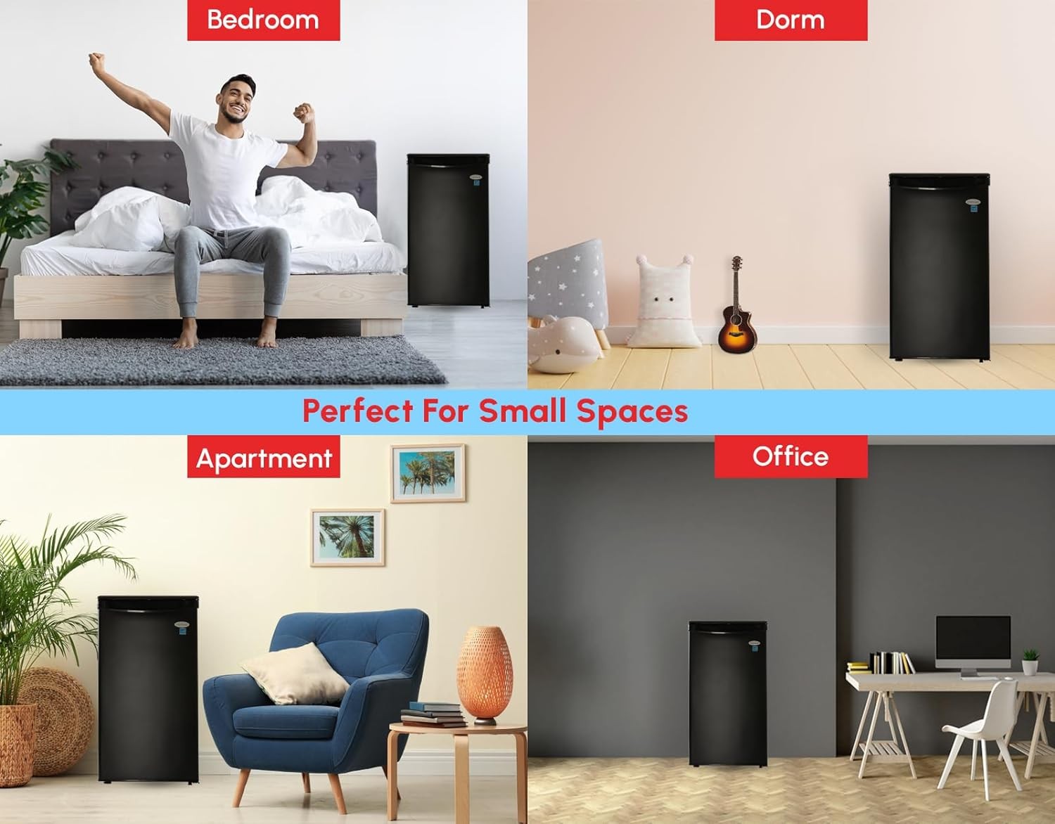 Space Saver - Its compact enough to fit in any small space in an Apartment, Dorm, Office, Hotel Room, Garage, Kitchen, School, Pantry by using reversible door option through which you can change opening direction towards right or left depending on your needs and room layout. Flat back design is value added feature means it doesnot have any exposed components which makes it easy to fit in any small area.