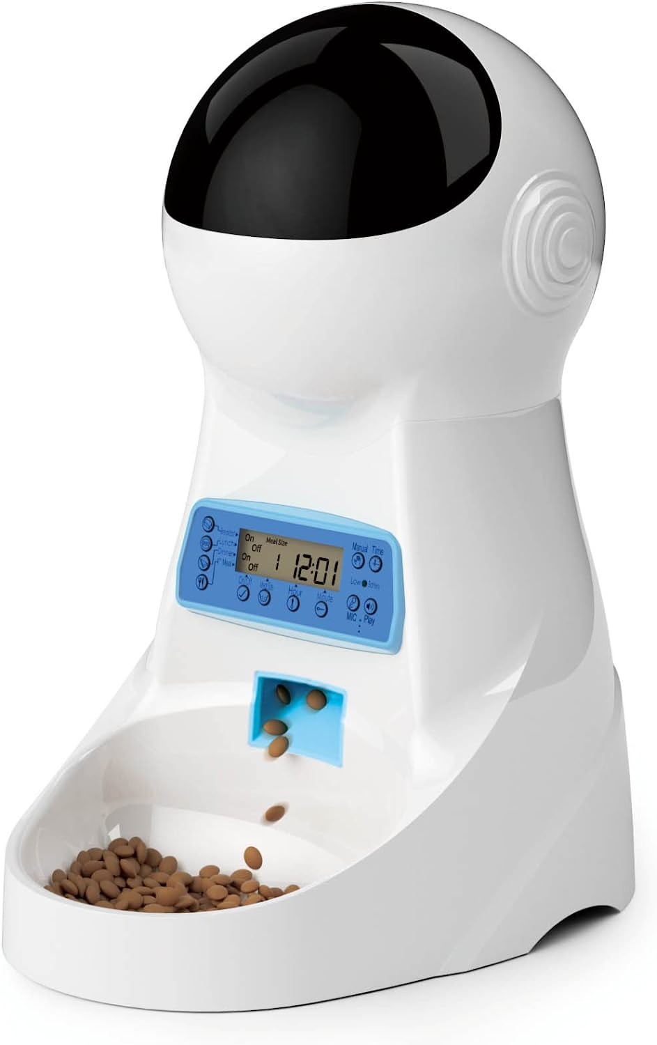 Flexible Meal Schedule: Iseebiz automatic cat or dog feeders up to 4 meals daily with 1-39 portions customized healthy diet for your cats and dogs. Anti-Clog Design:The IR detector will have the suitable angle to prevent the pet food from clogging or overflow. Personalized Recordings: Press and hold the voice recording button on the auto pet feeder panel to create your own 10s personalized voice recording that calls your pets when food is dispensed. Iseebiz automatic cat food dispenser make your baby pet will not feel lonely when you are away, fed regularly and feel well cared. You can cancel it if you don’t need it. Dual Power Supply: Power Supply(5V DC adapter) or 3 alkaline D-cell batteries are used(Battery not included). We recommend using the two together in case of power outages.This automatic cat or dog food dispenser with timer keeps your pet fed consistently. Double Freshness: The screw lock design of the top cover can only open the top cover when it is rotated to half of the screw to prevent naughty pets. The auto cat or dog feeder has a replaceable desiccant box in the lid to keep cat or dog food fresh, The top cover forms a kind of seal to keep the coarse ground food fresh, Removable food container, easy to install and clean. Never Miss Feeding Your Fur Friends: This automatic pet feeder consistently provides 12.65cups food for your cats and dogs smoothly for about 15 days. No worries during short-term travel or working overtime, Your baby pets will be fed on time when you are away.