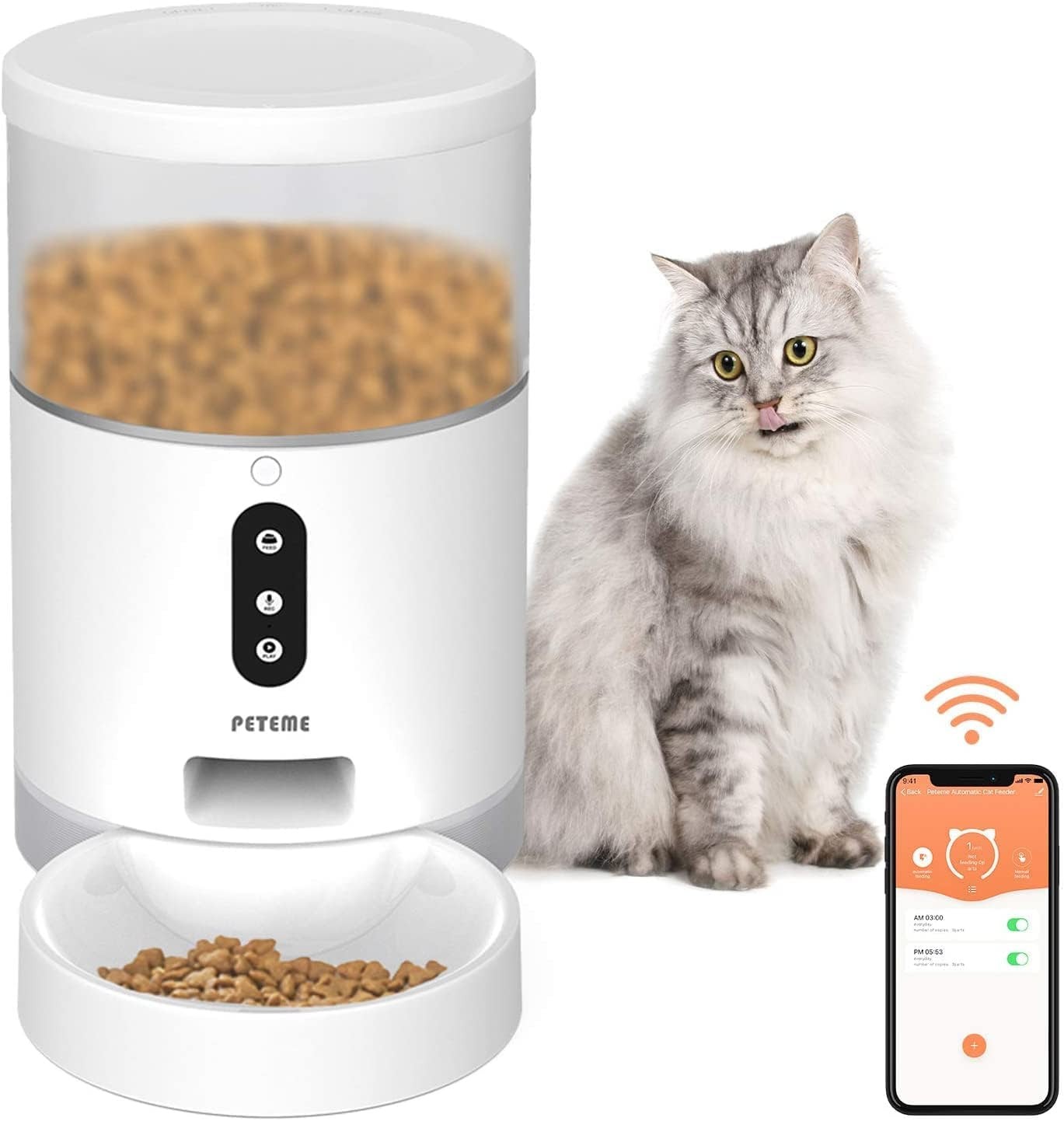 ?【APP Smart Pet Feeder】 4L automatic cat feeder is intelligently controlled by APP. Don’t worry about your pet’s health when you need to travel short distances and work late into the night. Note: WiFi network must be at 2.4GHz frequency for pet feeder to work normally, 5GHz is not supported. ?【Various Component Options】 The feeder is only suitable for 2-10mm dry pet food. The timetable for providing pets is up to 6 meals, with 1-10 servings per meal, and each serving is about 8-10 grams. You can develop a personalized meal plan for your pet to prevent your pet from overeating. ?【Recording function】 Personalized recording function, call your pet when food is distributed. Let it know that you are by its side and will not be sad because of your leaving. (For example, hey buddy, come on, it's time to eat!) ?【Dual Power Supply Battery Life】 The automatic cat distributor has dual power supplies. Use a 5V DC adapter and 3 alkaline D-type batteries (not included) for power supply. In the event of a sudden power failure, the feeder continues to work on batteries. Make sure your pet continues to get food. (Set with memory function to prevent sudden power failure) ?【Easy to Use and Clean】 All parts can be disassembled and rinsed with water (Except the host), and must be wiped dry before assembly. The translucent storage slot allows you to clearly know the amount of food. Place the feeder in the corner of the wall to prevent it from tipping over.