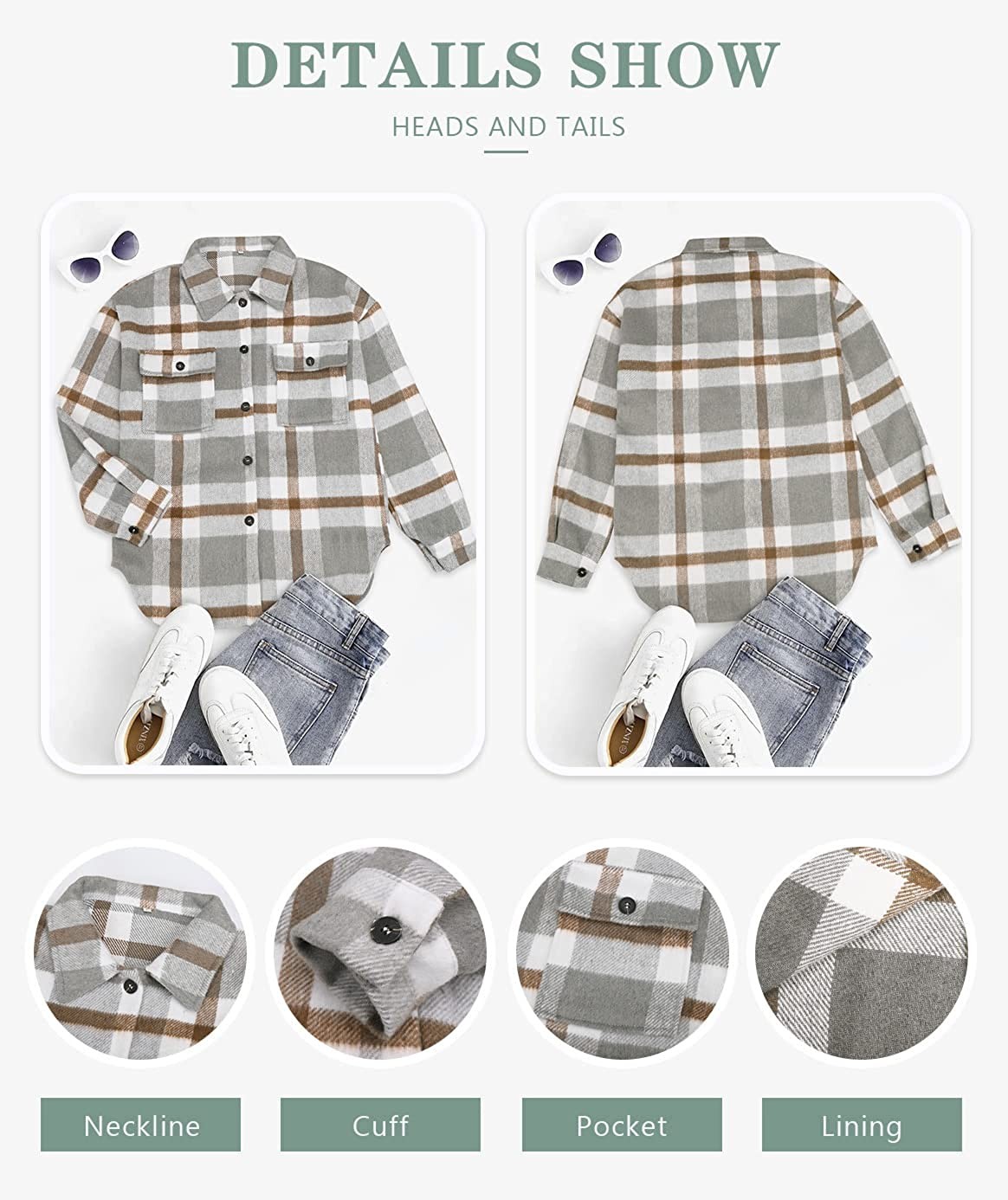 [Flannel Plaid Shirts]-So versatile is our flannel button down pocket top that can be worn open as a jacket or closed as a shirt! oversized, loose fitting, casual style great to match with basic T-shirt, crop top, leggings, jeans, bodycon dress, sneakers or high heels for casual look that's easy to love all season long.