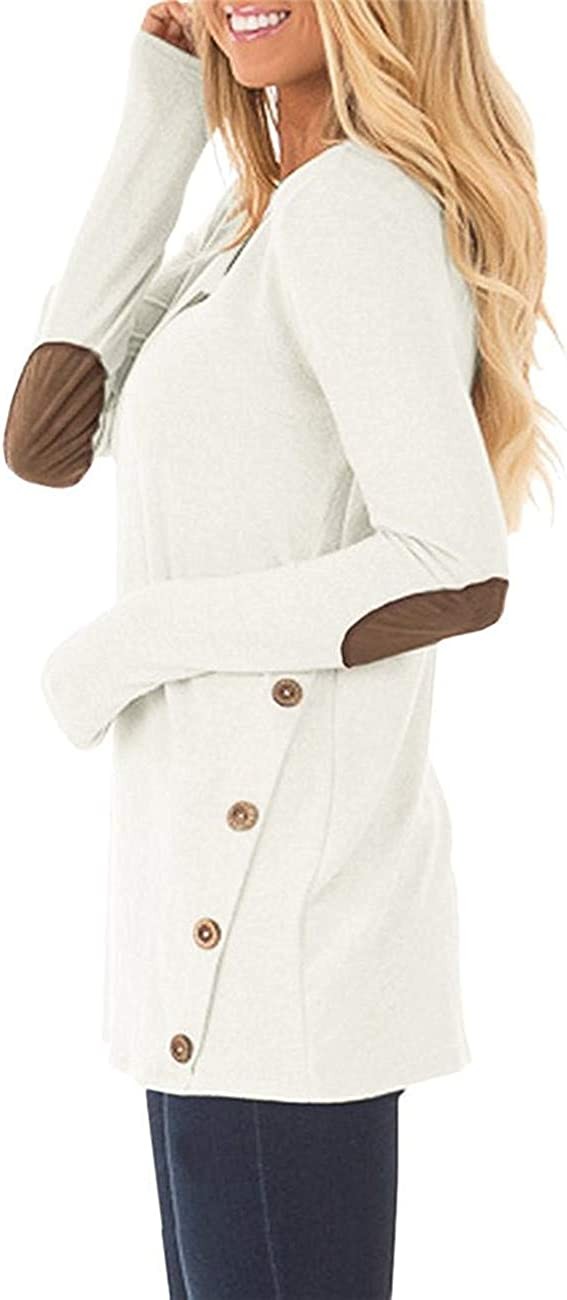 Polyester,Cotton,Spandex Button closure Machine wash or hand wash Material:60% Cotton+35% Polyester+5% Spandex.lightweight, super soft and stretch fabric. Features:Round neck,Elbow patch,Long Sleeve with Faux Suede, Loose Top,Buttons on both sides.Beautiful long sleeve top for the women. Occasions and collocation : Daily Wear,Vacation.Casual style makes it perfect fit for pairing with jeans,leggings, yoga pants, casual trousers, sweater chain, scarf, necklace, boots, jacket or coats and soon. Attention:Machine wash separately or hand wash.As different computer display colors are different, the color of the actual products may be slightly different from the images Thank you for your understanding.
