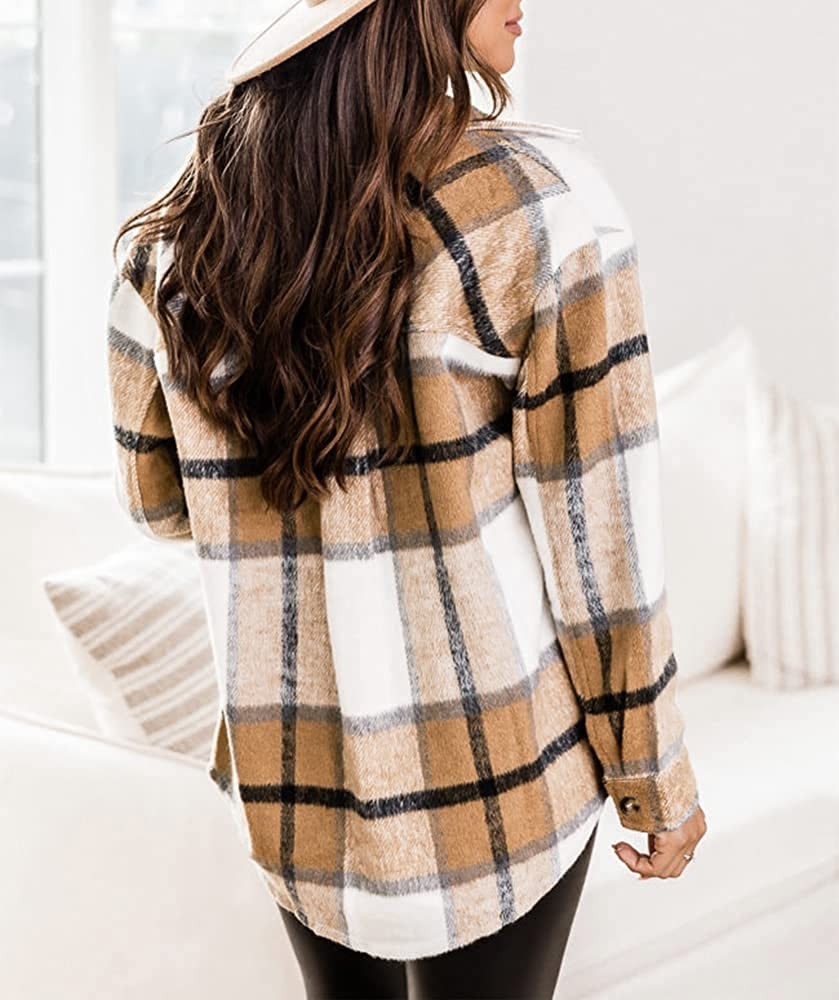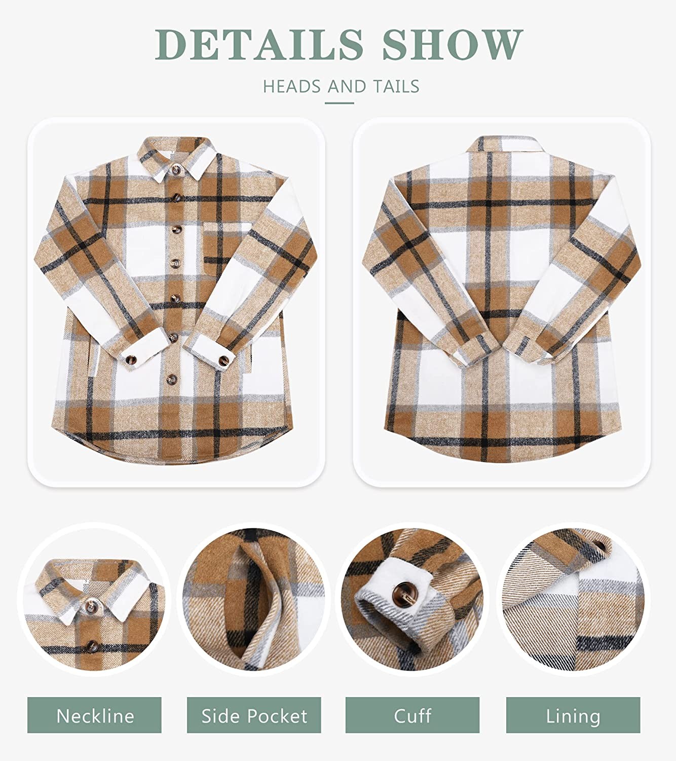 [Material]-The pocketed plaid shacket is made of flannel fabric.warm, super skin-friendly, non-balling, non-fading, soft to the touch, and bright in color,comfortable and fit,best for autumn and winter.