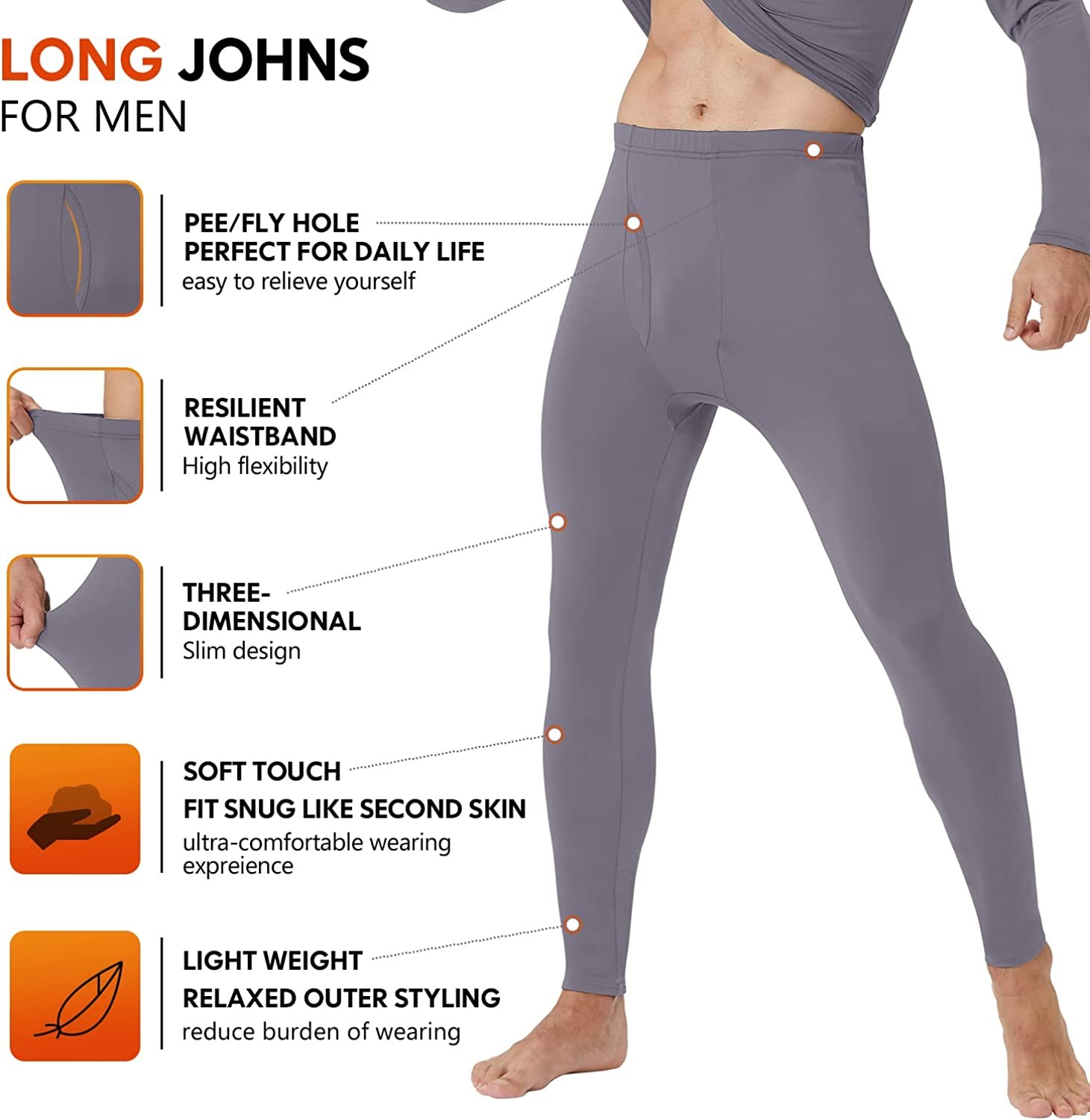 90% Polyester, 10% Spandex Imported Pull On closure Machine Wash ULTRA SOFT AND SUPER WARM: CL Convallaria mens thermal underwear set is made of 90% Polyester / 10% Spandex blend fabric with high density fleece lined, the insulation material which can lock your body heat well. The super skin-touch and ultra soft long johns for men fit snug like a second skin for minimizing heat loss and keep you warm in the cold winter. STRONG MOISTURE WICKING(WITHOUT THE SWEATY MESS): Our fans say the unique breathable, moisture-wicking fibers on CL thermal underwear will wick away moisture to keep you dry with no sticky or clammy feeling so you can wear them all day for your work or snow adventure. The smiles on men's faces will tell you how satisfied with this thermal underwear set. 4-WAY STRETCH INSULATED UNDERWEAR: While adopting the design of the Four-way stretch, we improved the crotch and armpit according to the feedback of market customers. make the reach and squat more comfortable while retaining excellent elasticity and durability for maximum mobility. CL uses high-quality stitching for thermal leggings and long sleeve shirts to beat super-active days and many muddy adventures.And insulated design let you get rid of static trouble in dry autumn and winter. EASY CARE OF BASE LAYER SET:Our men's base layer top and bottom are set with no labels in order to obtain greater comfort, which can reduce any skin irritation. You can slip them on and off easily and can be worn under your clothes for added insulation and at the gym for added support and movement. And these men's thermal underwear will not fade after washing. The highest dyeing fastness even after multiple washing will not fade and shrink. FOR ANY OCCASION: We stock these different kinds 2 pack set thermals for men in a wide range of sizes. The thermal set is fitted with elastic for added comfort to keep tops and bottoms from falling down or bunching up (even on long hiking), and if your family enjoys hunting, camping, snowboarding, skiing, cycling, or running then CL makes a great base layer. Also it is good to wear at home or as a base layer under your coats, it will warm you as comfy pajamas on cold nights.