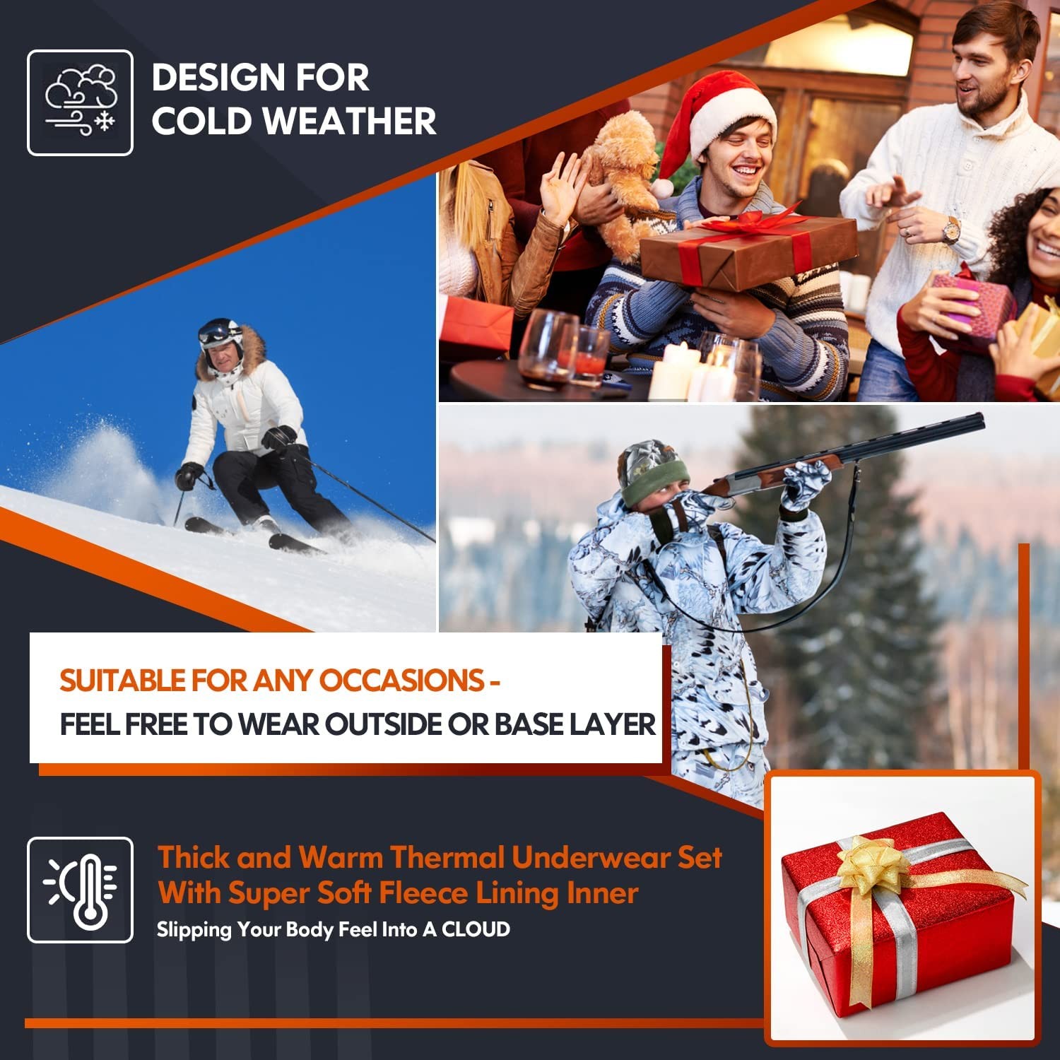 ULTIMATE THERMAL RETENTION: Designed with high quality fleece lining, the thermal underwear mens is windproof, Set of long sleeve thermal shirt and bottoms can keep you warm while running, cycling, hiking, hunting, jogging or walk the dog for extreme cold weather.