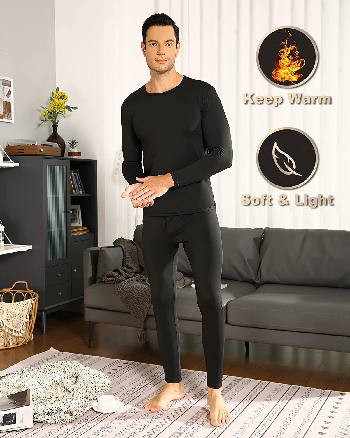 92% Polyester, 8% Spandex Imported Pull On closure Machine Wash 【1 Set Men Thermal Underwear】ViCherub mens base layer underwear thermals provide seven colors for you:Black,Grey,Blue,Charcoal,Christmas Design,Navy,White;Standard US Sizes(S M L XL XXL 3XL).Classic colours for different fashions as a reference. 【Ultra Soft and Comfortable】Thermal underwear for men is made of 92% Polyester and 8% Spandex, luxurious and snug, but it doesn't restrict movement at all. The base layer men's set matches neatly and when temperatures are close to or are freezing cold, they keep you quite warm. 【Highly Stretchable】Wear-resistant and shrink resistant material. Offers full mobility and freedom of movement, gives you flexibility to move and keep you warm without sacrificing your range of motion or comfort. The long underwear mens can be worn as comfy pajamas on chilly nights. 【Good Moisture Wicking】Thermals top and bottom set for men are designed to be thin but effective at insulating body heat. The lightweight material is not just able to retain body heat but simultaneously wick away moisture to maintain a comfortable temperature. 【Snug & Easy Care】Our long johns for men are snug designed, that ensures no bunching around your waistline or sleeves to reduce heat loss and better fit when worn under outer layers. Machine Washable, repeatedly washed without shrinking, no fading with the highest grade color fastness, non-irritating. Please DO NOT put them in dryer.