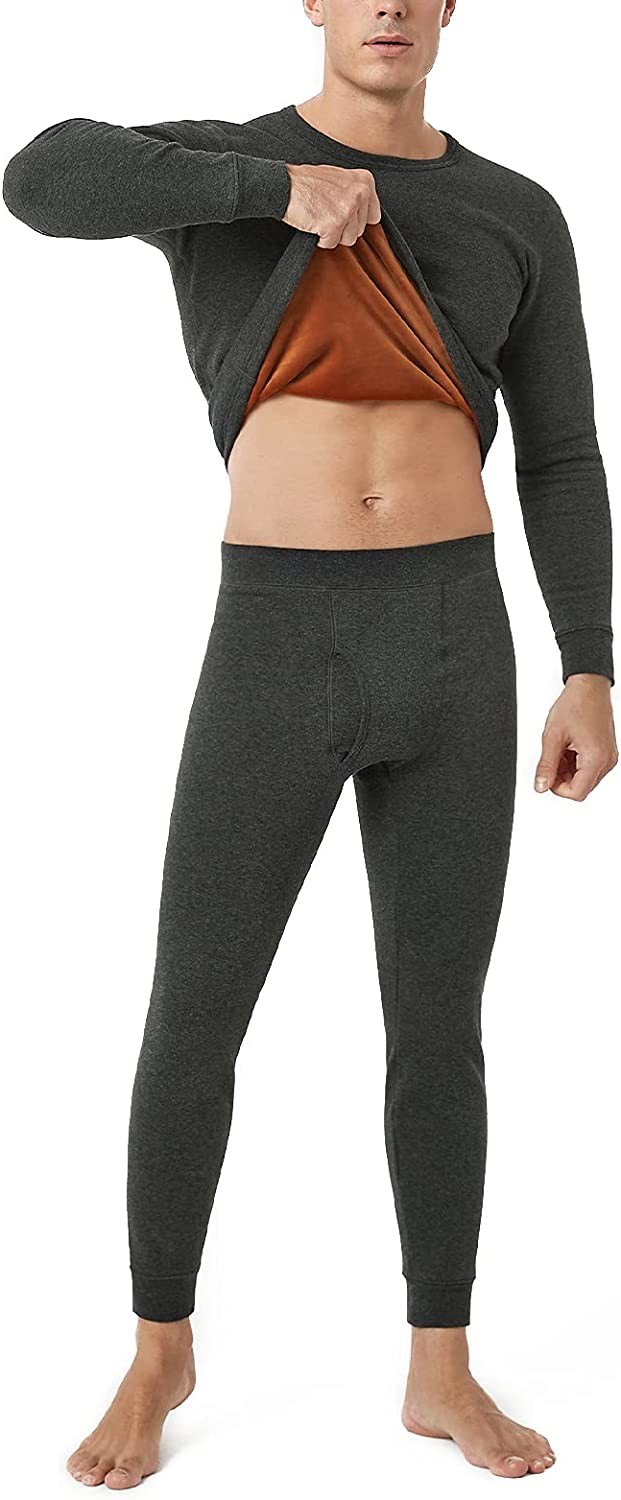 560g/m² - Outer Material: (44% Polyester, 52% Cotton, 4% Spandex); Inner Material: (95% Polyester, 5% Spandex) Imported Pull On closure 【COMPOUNDED COMFORT】 The velvety inner material is a blend of 95% polyester and 5% spandex, which will not only feel silky smooth against your body, but will keep you at an ideal temperature in harsh climates. The outer material is made of 52% cotton, 44% polyester and 4% spandex, which is results in a lush soft fleece.The 1/8" thick layering of these fabrics will feel like a second skin and effectively seal out the cold. 【INDISPENSABLE HEAT】The ultra heavyweight base layer is the perfect choice for people living, playing, or working in frigid temperatures who expect proper heat retention from their thermals. 【ELASTIC & SNUG】The sturdy stretch material allows complete unrestrained freedom of movement while the ribbed cuffs prevents wind from penetrating to provide superior comfort and function. These thermals will move along with you and stay cosy to protect you from the elements. 【OPEN FLY】 These long johns have a double layer open fly design for easy access and convenience when nature calls. 【SATISFACTION GUARANTEE & CUSTOMER SERVICE】Contact us at any time if you have any questions. We will offer you the best service to reach a satisfactory solution.