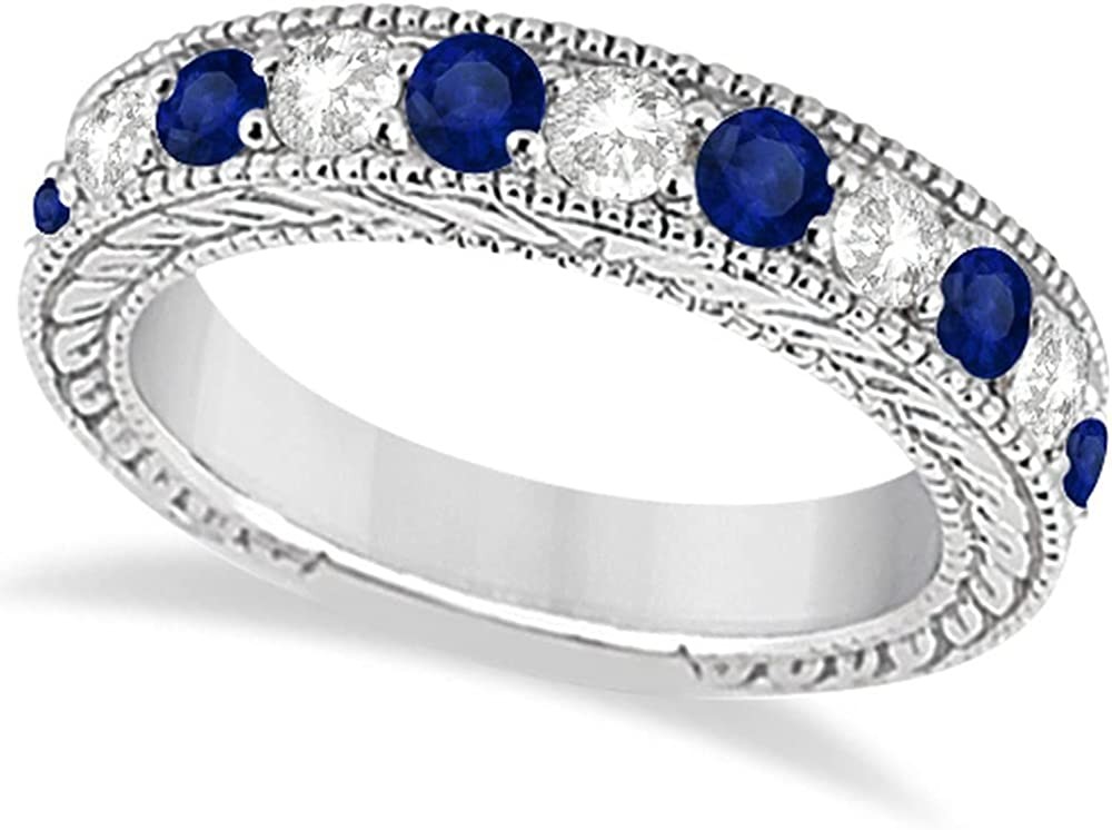 Women's Antique Diamond and Blue Sapphire Bridal Ring Set in Platinum (3.87ct)