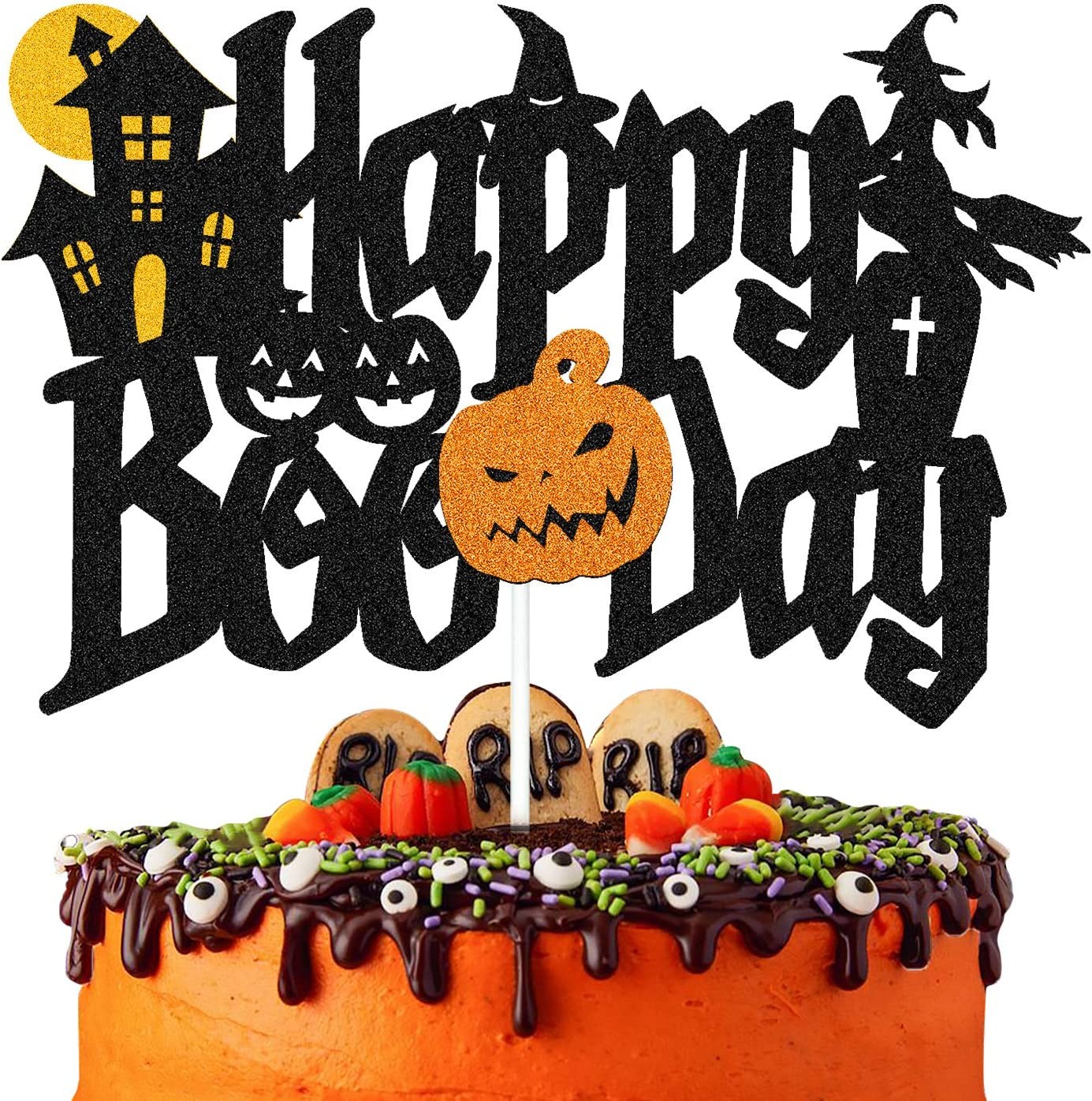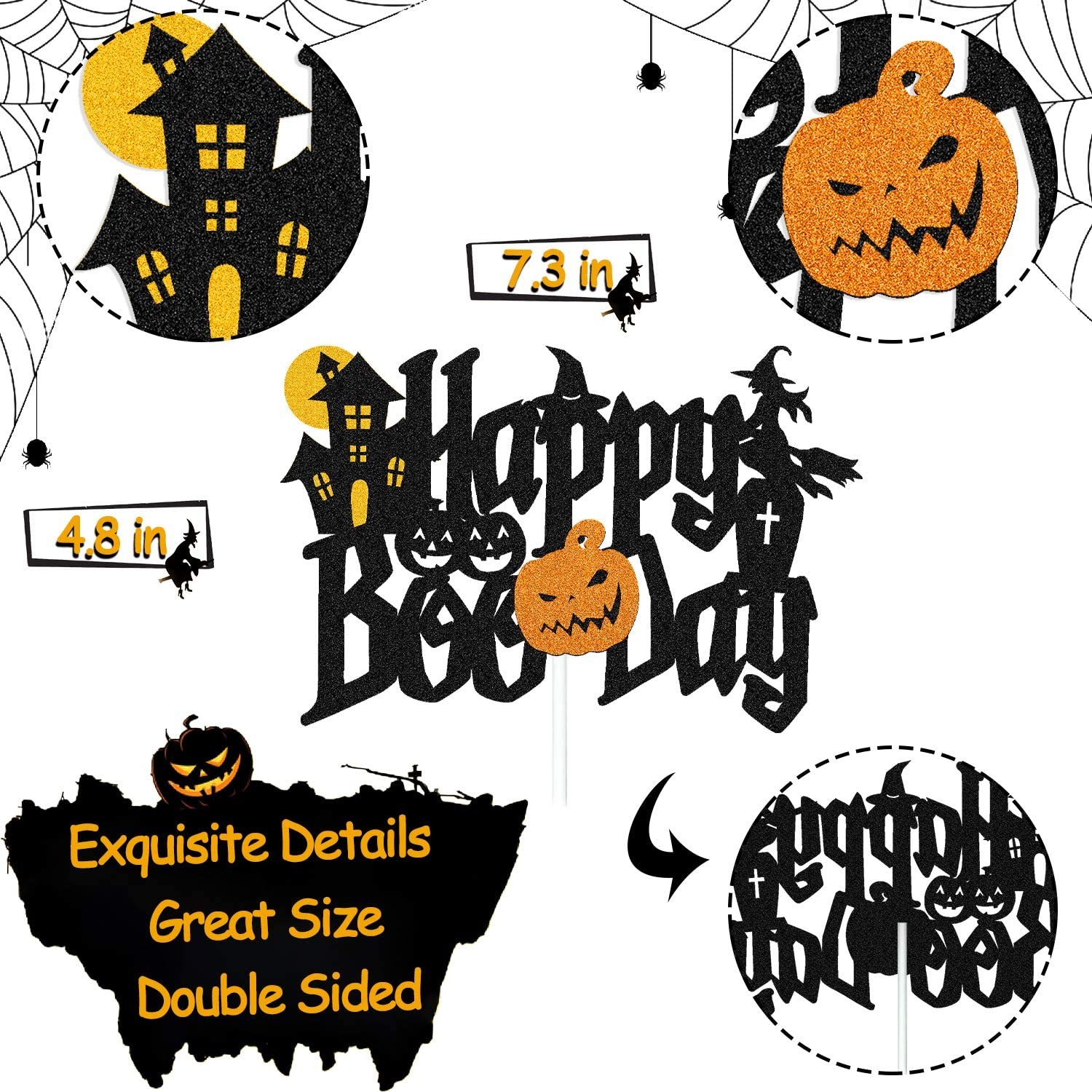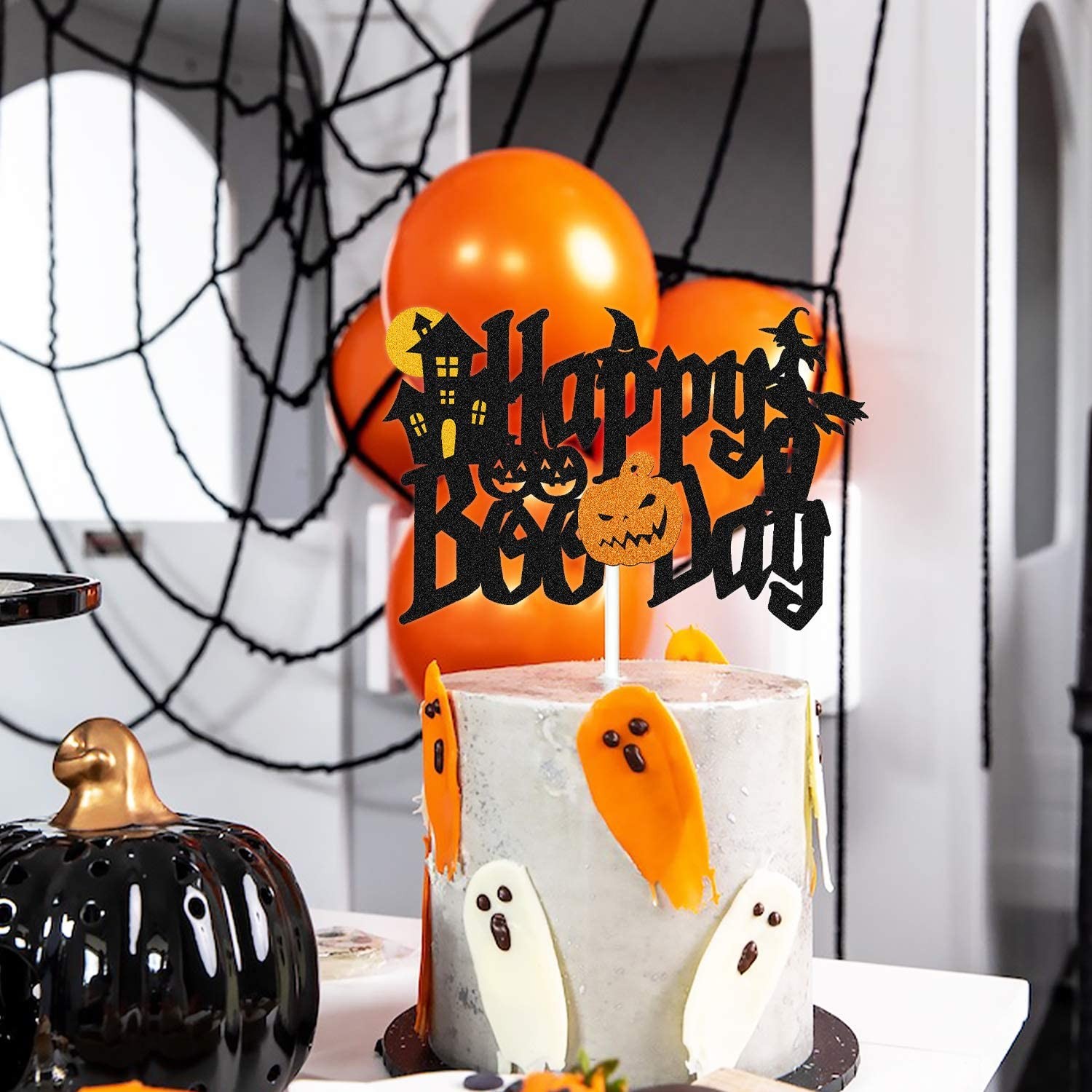 ?Add the perfect amount of the sparkle to your cake with this happy boo day cake topper! Are you celebrating or planning someone a halloween theme specials birthday party? Our halloween cake topper will add the perfect touch to your cake and look amazing at your Halloween Wizard Witches Ghost Pumpkin themed birthday party!! ?PACKAGE INCLUDES: 1 Pack halloween theme happy boo day sign cake topper. Great decorations for man women kids boys girls Here for the Boos Decorations Halloween Wizard Witches Ghost Pumpkin themed birthday party. Approximately size of happy boo day cake topper is 7.3" wide x 4.8" tall. ?MATERIALS - Made of premium quality, no-shed double sided black glitter cardstock. There is also glitter on the back side with food-safe paper sticks. Unique and cute halloween cake topper is ready to decorate the top of cake for that special birthday! ?PRE-ASSEMBLED: Glitter happy boo day cake topper is pre-assembled, NO DIY! Opening package directly and decorating your baby kids boy girl man women’s halloween themed cake,make your cute cake looks more delicious. ?THANK YOU FOR SHOPPING WITH US - Always feel free to message us here on Amazon if you have any questions, we are happy to help you! If you are not completely happy with your halloween cake topper, pls contact with us!