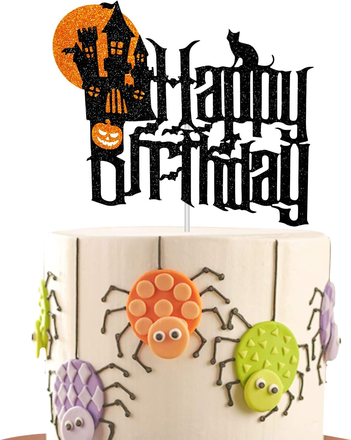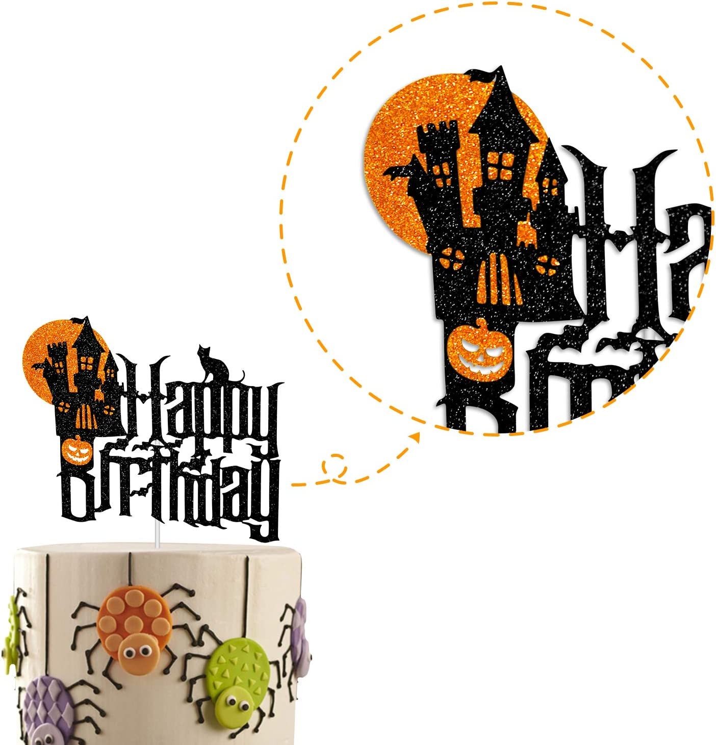SIZE - Topper size 5.91 x 8.9 inches,Suitable for 6 - 12 inches wide cake, you can adjust the inserting depth of it to adjust the height of cake topper. What you will get - 1Pcs Black Glittery Happy Birthday Cake Topper. These Cake Topper is The Perfect Decoration Welcome your friends to your Halloween Theme Birthday Party. MATERIALS - Made of High Quality Glittery Paper Material, adorable designs with good cutting process,you can use them safely. Not DIY, very convenient. PRE-ASSEMBLED - Glitter halloween cake topper is pre-assembled, NO DIY! Opening package directly and decorating your baby kids halloween themed cake, make your cute cake looks more delicious. Suitable for many occasions: Kids birthday party, Baby shower, Anniversaries, Festival, Theme party, Advertising balloon and so on baby shower, perfect for decorating cupcake cake dessert or other pastry.