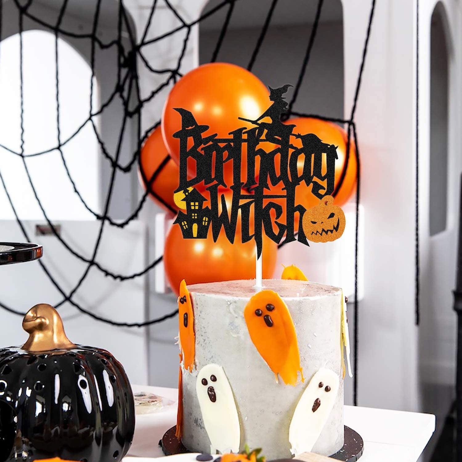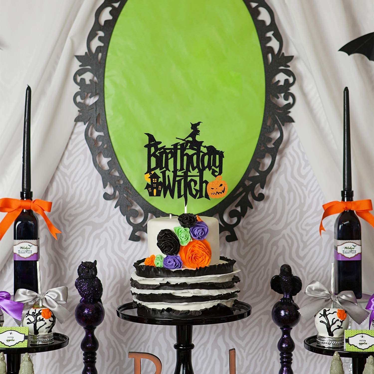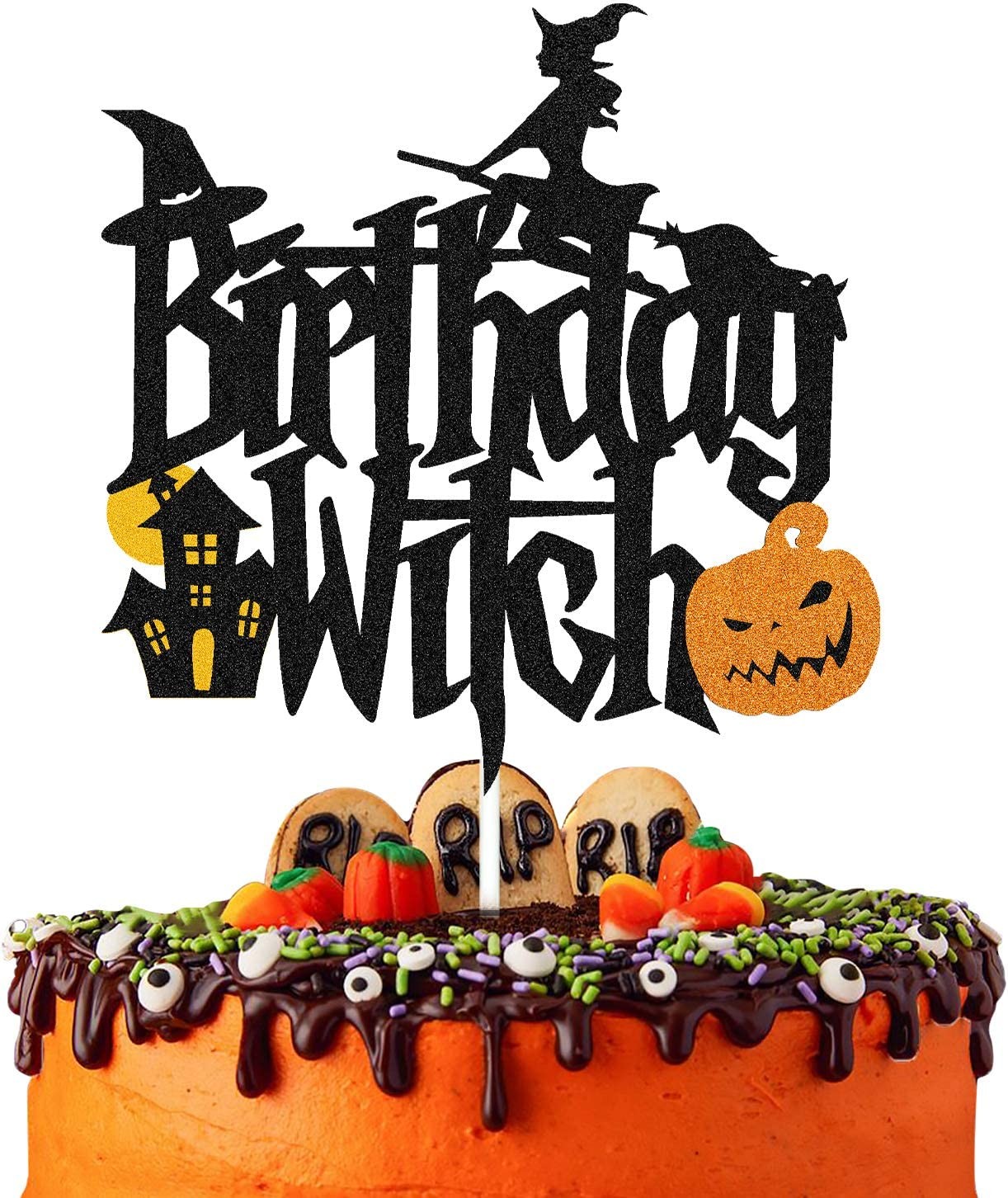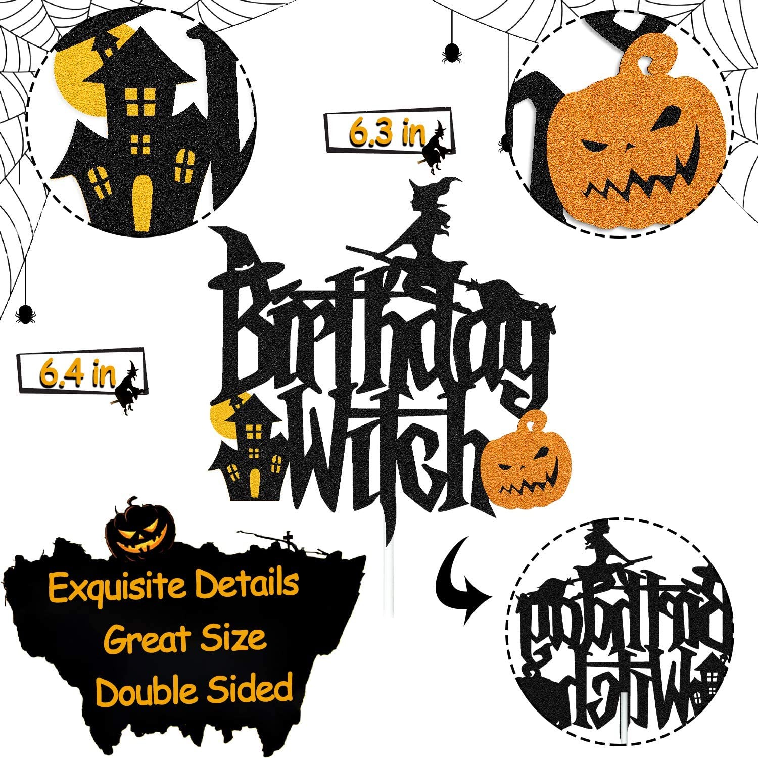 ?Add the perfect amount of the sparkle to your cake with this birthday witch cake topper! Are you celebrating or planning someone a halloween theme specials birthday party? Our birthday witch cake topper will add the perfect touch to your cake and look amazing at your Halloween Witches Ghost Pumpkin themed birthday party!! ?PACKAGE INCLUDES: 1 Pack halloween theme birthday witch sign cake topper. Great decorations for women girls Halloween Witches Ghost Pumpkin themed birthday party. Approximately size of halloween birthday cake topper is 6.3" wide x 6.4" tall. ?MATERIALS - Made of premium quality, no-shed double sided black glitter cardstock. There is also glitter on the back side with food-safe paper sticks. Unique and cute halloween cake topper is ready to decorate the top of cake for that special birthday! ?PRE-ASSEMBLED: Glitter halloween cake topper is pre-assembled, NO DIY! Opening package directly and decorating your women kids girl halloween themed cake,make your cute cake looks more delicious. ?THANK YOU FOR SHOPPING WITH US - Always feel free to message us here on Amazon if you have any questions, we are happy to help you! If you are not 100% completely satisfied with your halloween cake topper, pls contact us!