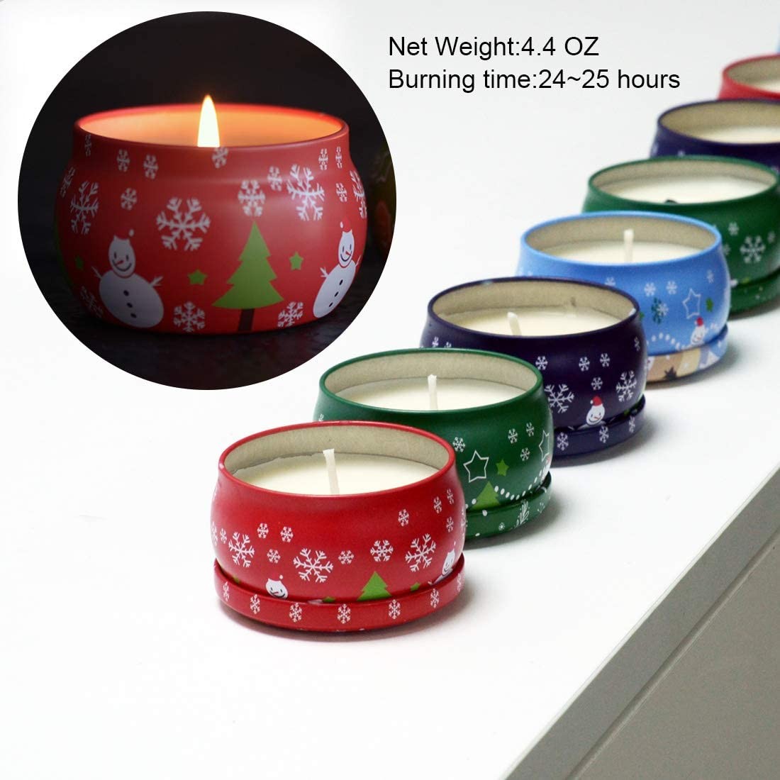 4 PCS Xmas Scented Travel Tin Candle Gift Packing - Natural Soy Wax, for Stress Relief Relaxation, Smokeless, Strong Fragrance, Long Lasting, for Christmas Eve Home Decor