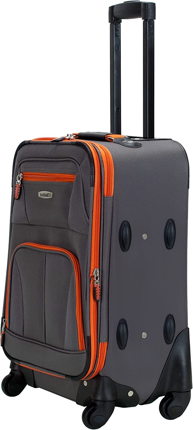 Rockland Pasadena Softside Spinner Wheel Luggage, Charcoal, Carry-On 20-Inch