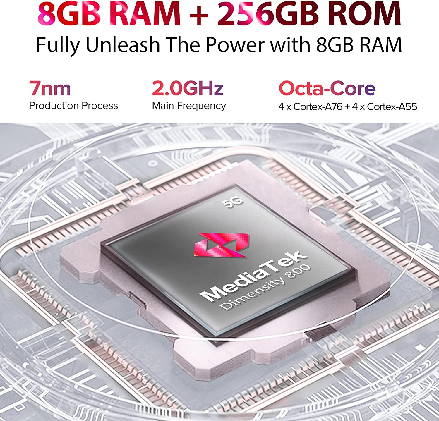 MEDIA DIMENSITY 800 CHIPSET & 8GB RAM & 256GB ROM - With a fully-integrated Media Tek Dimensity 800 5G chipset, Ulefone Armor 11 5G rugged cell phones can achieve high performance, low power consumption and system fluidity. Powered by 8GB RAM and 256GB of UFS 2.1internal storage can definitely meet your storing needs. Armor 11T 5G is capable of multi-tasking, streaming videos, running even the most demanding games with ease.