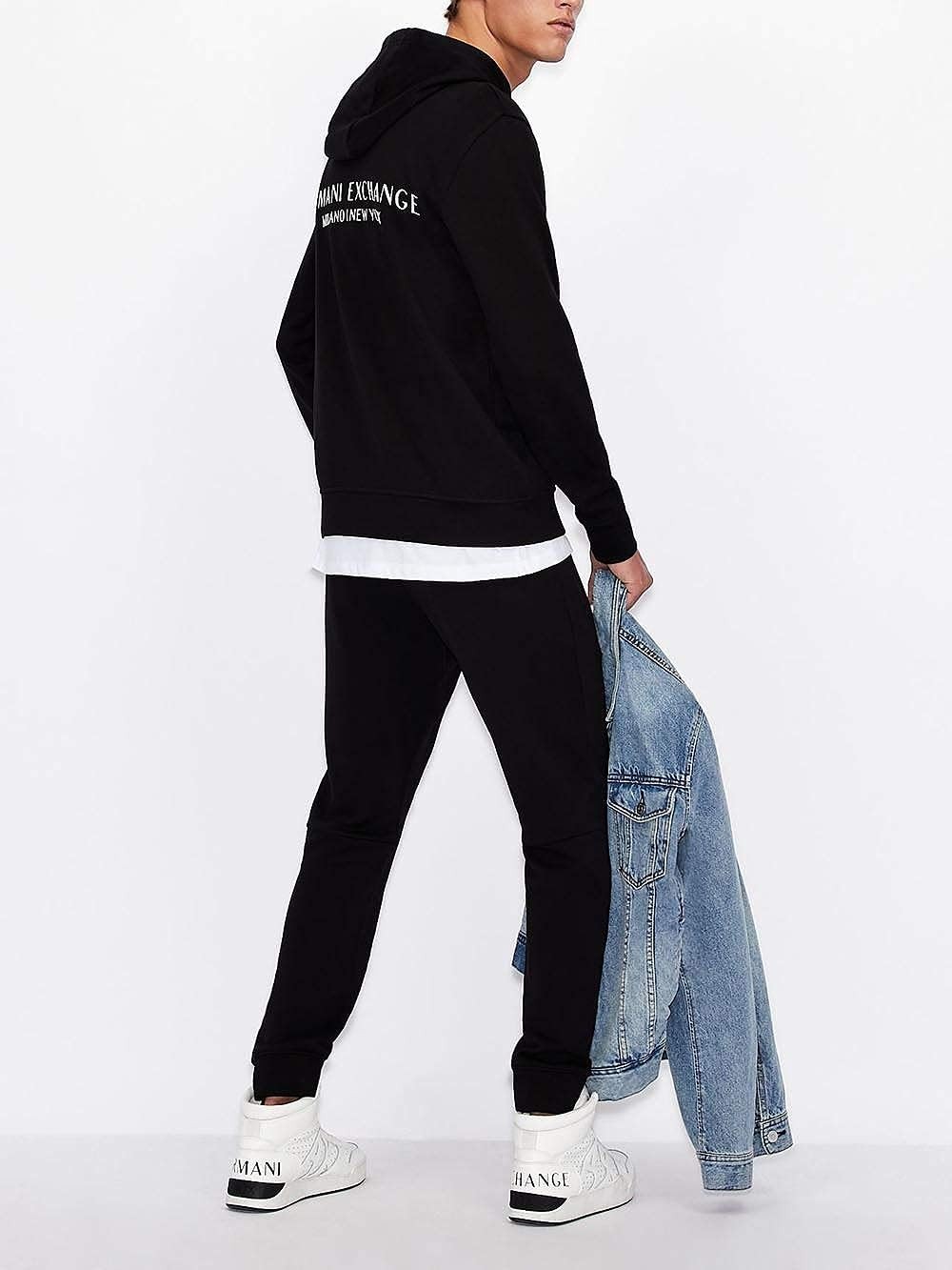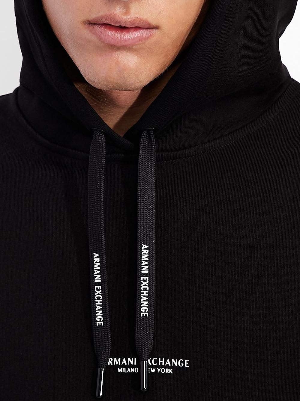 A|X ARMANI EXCHANGE mens Pull-over With Front Back Logo Hooded Sweatshirt, Black, Medium US