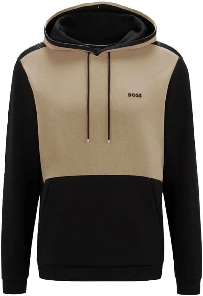 Hugo Boss Men's Soody 1 Black Khaki Color Block Hoodie Sweatshirt