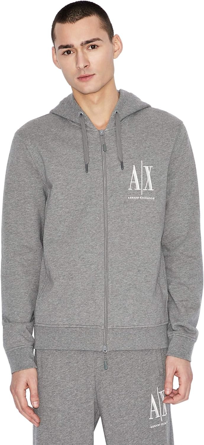A|X ARMANI EXCHANGE 男款 Icon Project 刺繡拉鍊連帽運動衫