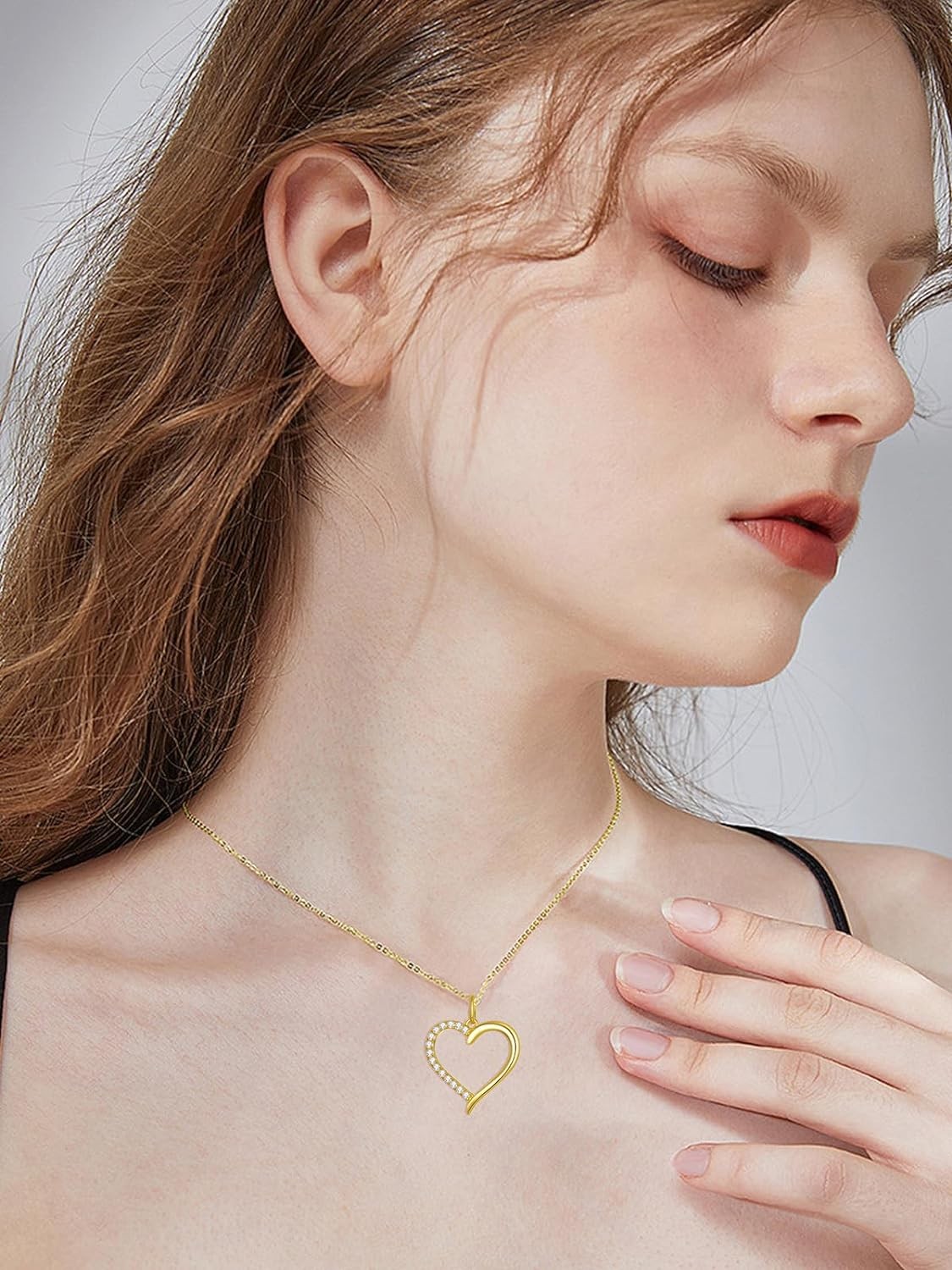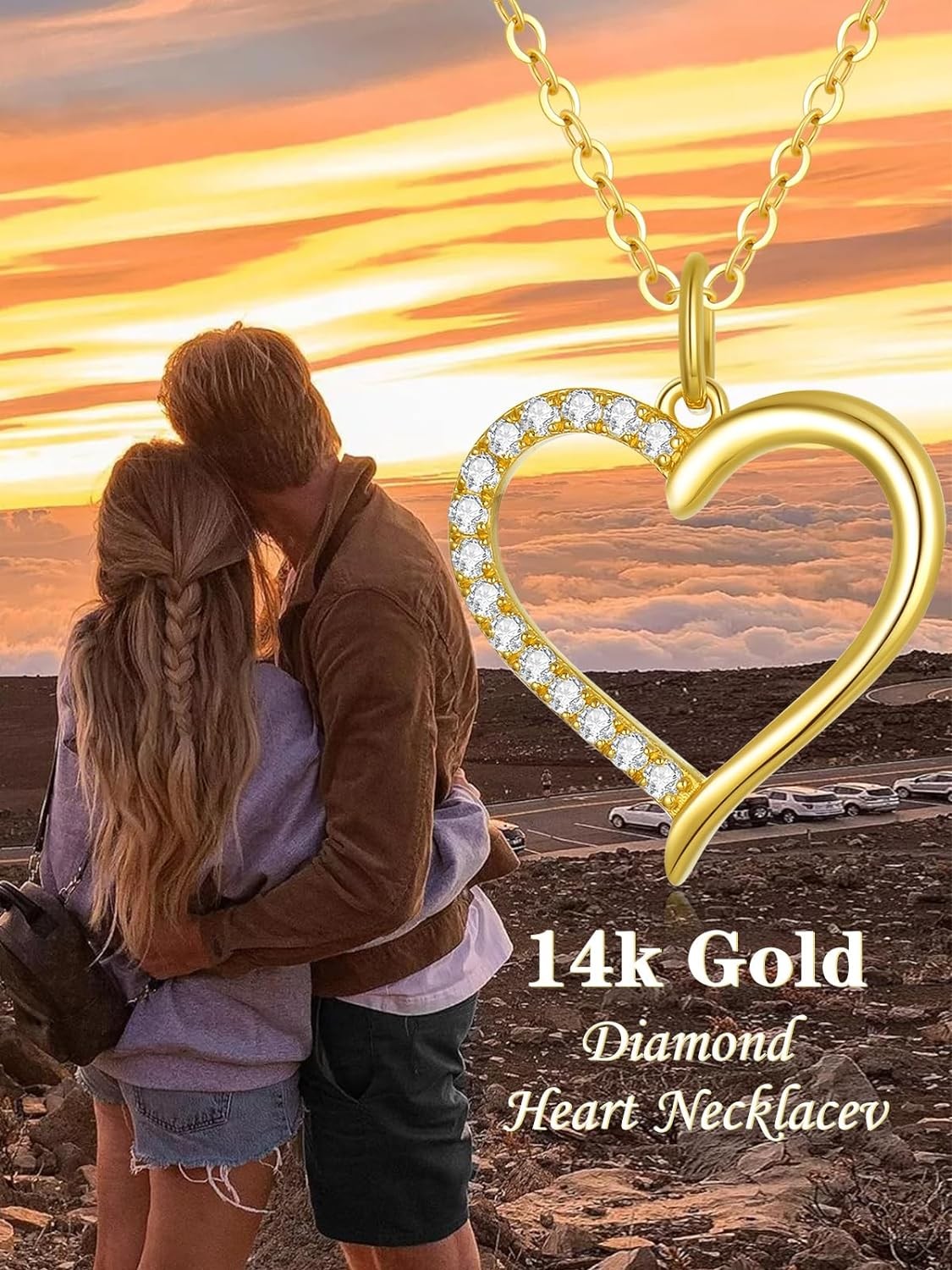 FENCCI 14K Gold Heart Necklace for Women, Gold Heart Pendant Necklace Classic Fine Jewelry Anniversary Birthday Christmas Gifts for Women Girls Mom Wife Girlfriend Her, 16"+2"