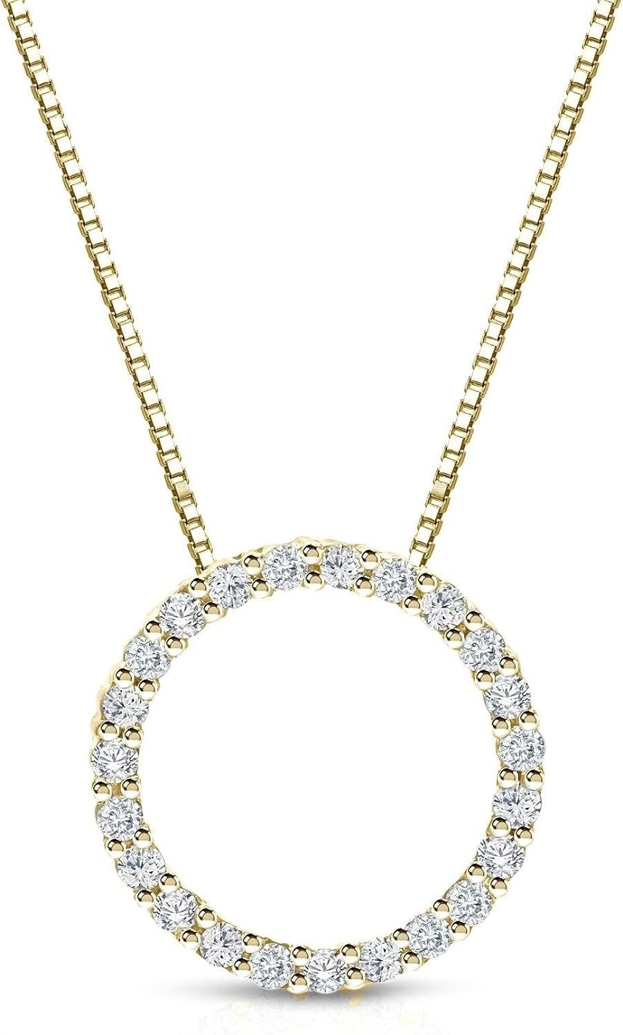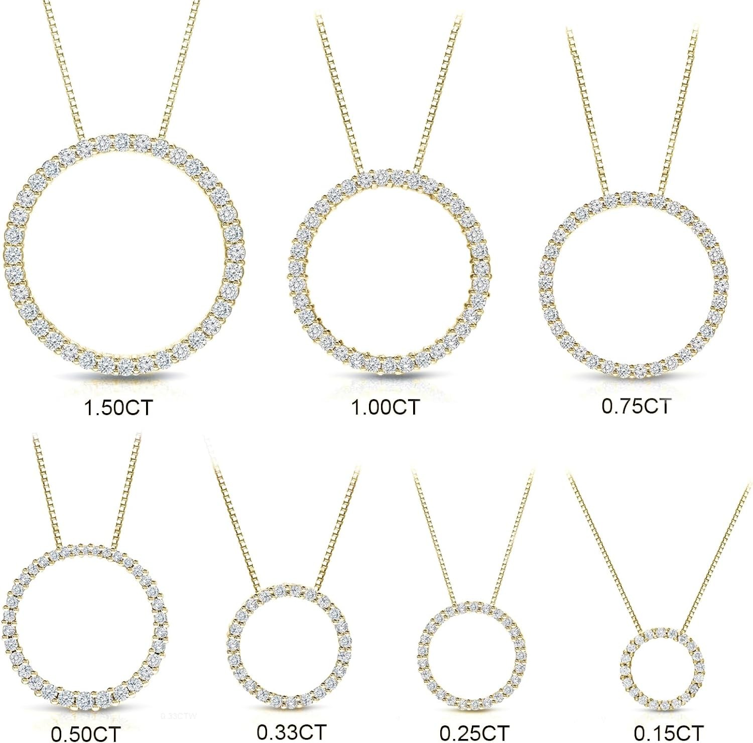 Diamond Wish 1/6 to 1 Carat Diamond Circle of Life Round Pendant Necklace for Women in 14k Gold (I1-I2, cttw) on 18 Inch Long Chain with Spring Ring Clasp