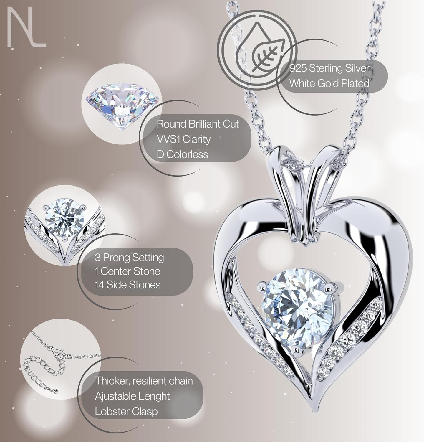 NOA LYNN Moissanite heart pendant gift for wife necklace with love 925 sterling silver necklace for wife jewelry Moissanite necklace for women Sterling silver pendant Necklace Love heart Moissanite Pe