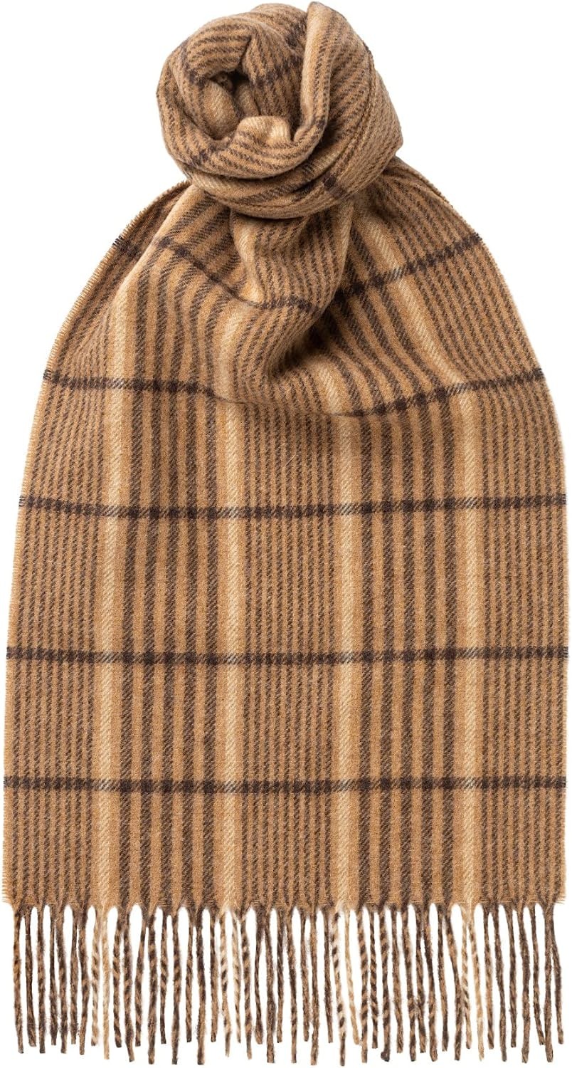 100% LAMBSWOOL - Woven with 100% Lambswool yarn to ensure our Glen Isla scarves have a lovely warm handle while also taking advantage of the wools natural properties. MADE IN BRITAIN - With skills passed through generations, our renowned history and heritage in the textile industry stretches back over 250 years. Woven at our family owned and operated mill in Britain, our Glen Isla scarves are created using traditional techniques. STYLE & SIZE - Made wearable for a modern-day wardrobe, our Lambswool scarves boast a muted colour palette making them suitable for both men and women. Created for versatile wear in a classic size of 64.9 x 9.8 inches, this check scarf in Lanton check beige is perfect for draping around your neck or tying up and tucking into your jacket. Naturally insulating for temperature regulation and the natural wool properties will also ensure your scarf is kept clean and smell fresh too! NATURAL & SUSTAINABLE - Woven and then hand finished to the highest standard to allow for no waste, our Glen Isla wool scarves use natural and sustainable methods throughout the weaving process to ensure each of our scarves are natural and sustainable. LUXURIOUS GIFTING - Give the gift of luxuriously Scottish Lambswool and spoil them with something extra special. The perfect thoughtful, unique and extravagant gift for him and her. CARE - All of our Glen Isla 100% Lambswool scarves should be dry cleaned or hand washed in warm water only.