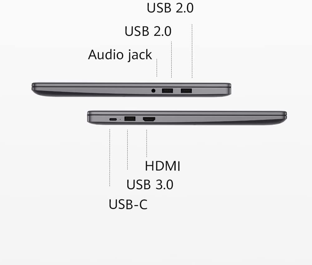 Ports:1 USB 3.1 Gen 1 Type-C (Data Transfer Only, 5 Gb/s signaling rate); 2 USB 3.1 Gen 1 Type-A (Data Transfer Only); 1 AC smart pin; 1 HDMI 1.4b; 1 headphone/microphone combo; 1 multi-format SD media card reader