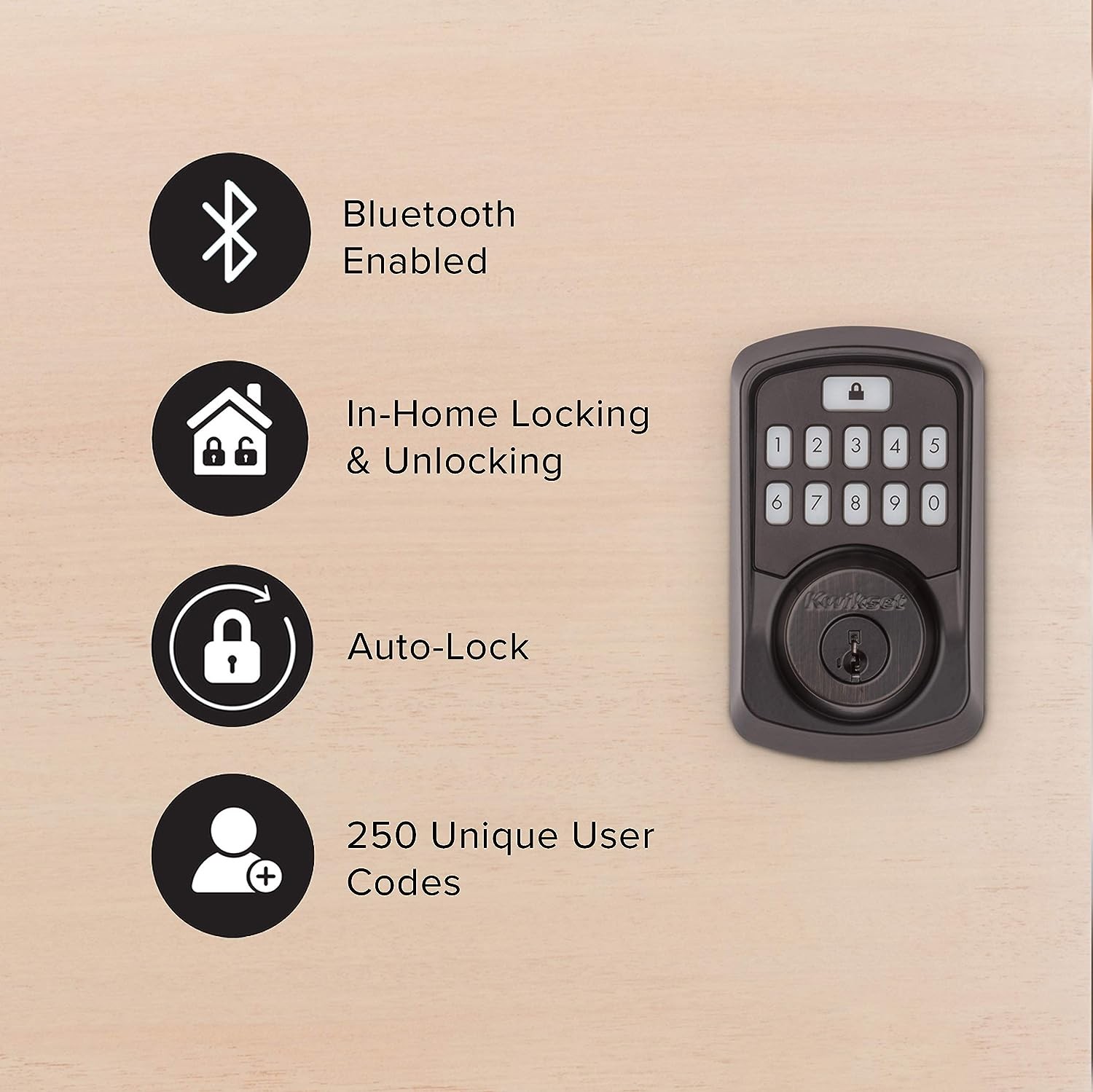 Aura is a Bluetooth-enabled smart lock with one-touch locking and a motorized deadbolt. Within Bluetooth range of the lock, you can use the Kwikset app to control the lock, manage lock settings, and assign user codes. With your personalized code, you can enter your home with the convenience of keyless entry. Aura is easy to install and operates on 4 AA batteries. This single cylinder deadbolt can be locked or unlocked by using the keypad or key from the outside as well as the turn button from the inside. The Venetian Bronze finish is hand-rubbed to reveal unique bronze highlights and provides a rich and warm complement to the product's style.
