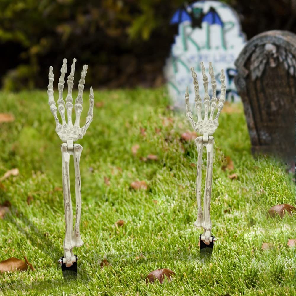 Realistic Looking Skeleton Stakes Severed Plastic Skeleton Hands Yard Signs for Halloween Props Decorations (1 Pair)