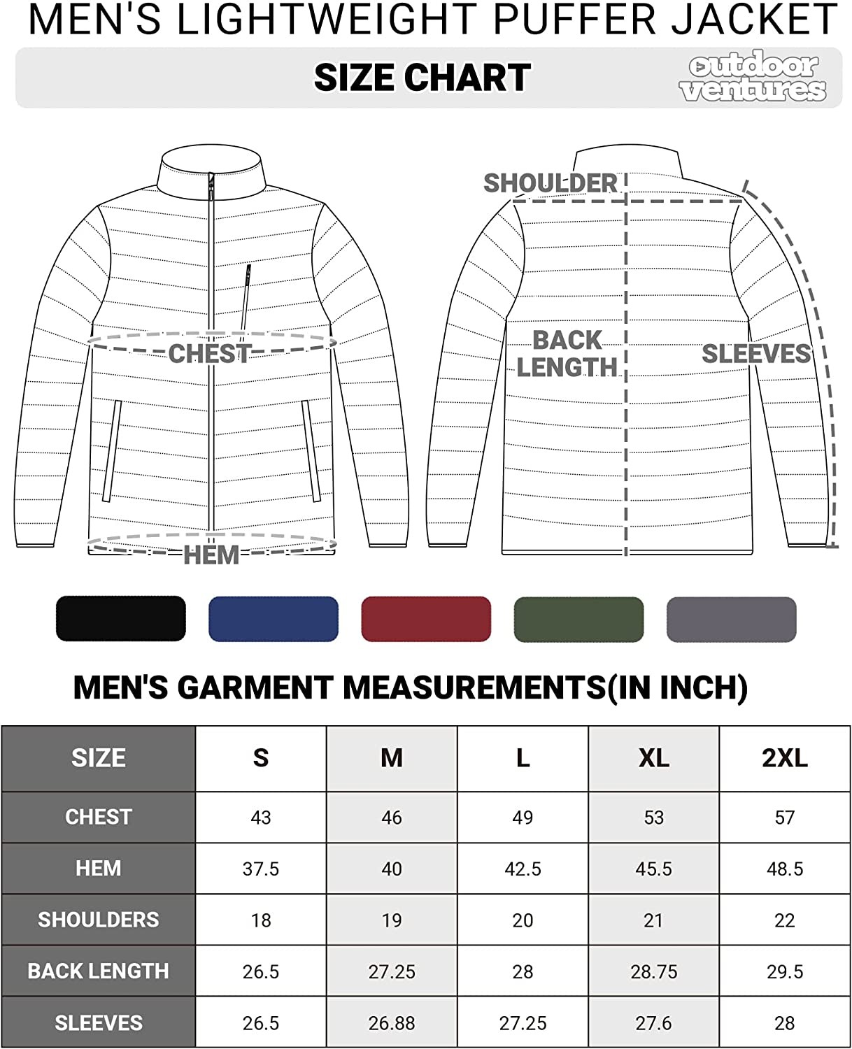 Outdoor Ventures Men's Lightweight Packable Puffer Winter Jacket Insulated Puffy Coat for Snow Ski Hiking Travel