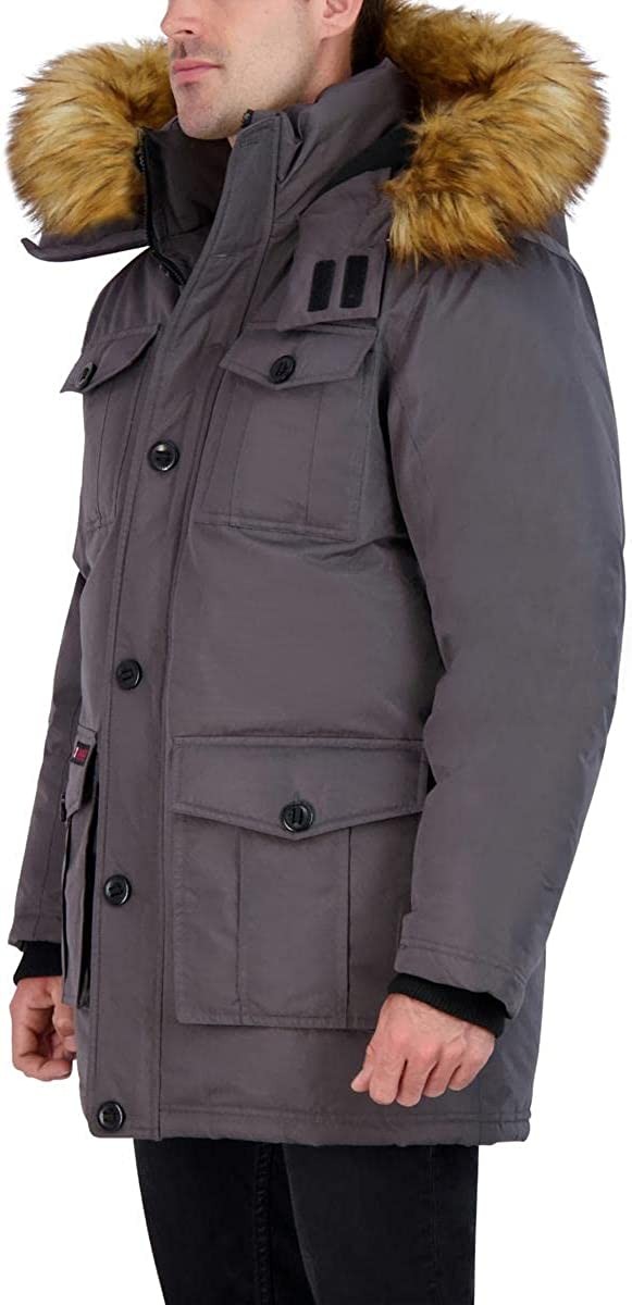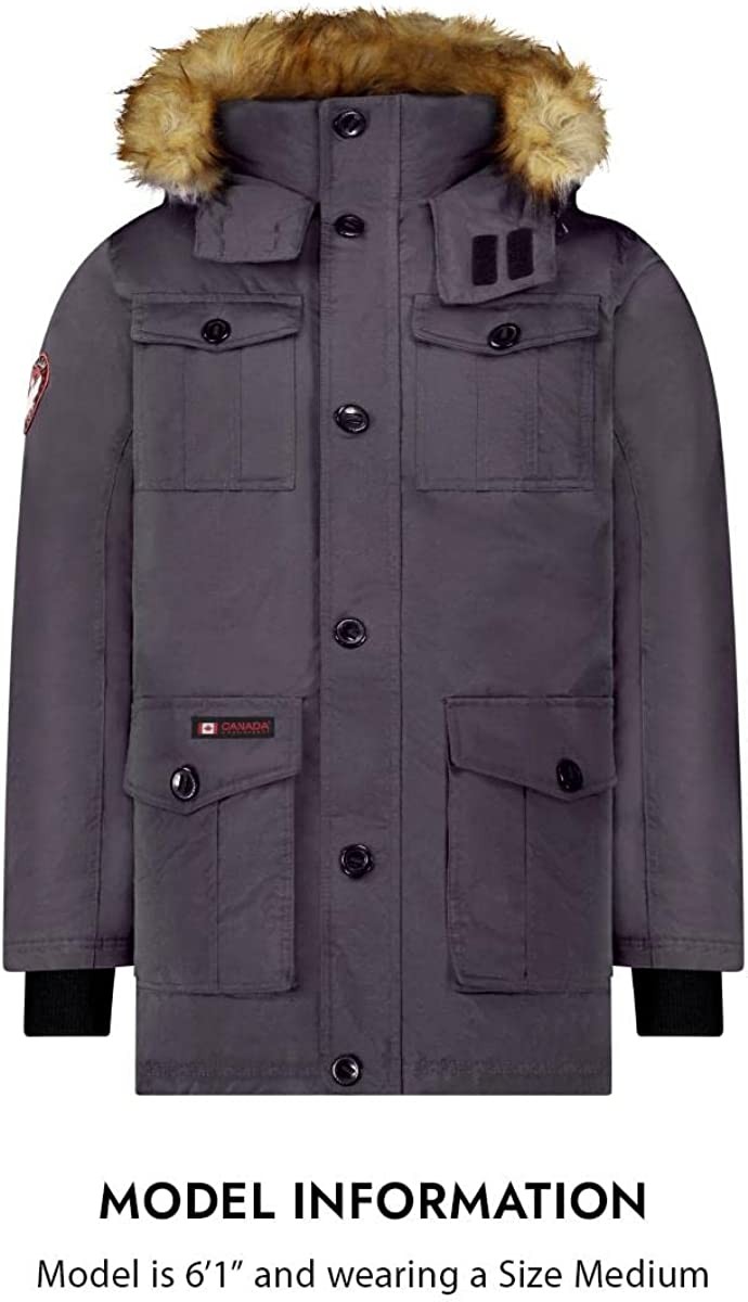 Nylon,Polyester,Acrylic Imported Zipper closure Machine Wash FUNCTIONAL STYLE: Take on the coldest weather in this heavyweight insulated parka coat by Canada Weather Gear; Functional and durable, this rugged coat will keep you warm all winter long; Perfect for outdoor adventure or daily wear DURABLE MATERIALS: 100% Polyester water/wind resistant shell, insulation and lining; 75% Acrylic/25% Polyester faux fur trim; Machine Wash DESIGNED FOR WARMTH: Warm poly fill insulation and waterproof materials allow you to endure extreme conditions; It's heavyweight design packs in the heat while venturing out into the elements FEATURES: Warm fleece lined hood, removable faux fur trim and storm cuffs for extra warmth; Button and zip closures; Multiple large exterior button pockets to safely store your essentials; Maintains warmth 15 C for low activity / -20 C for moderate activity Built for the man who loves to be outdoors with comfort and style in mind. The Canada Weather Gear outerwear collection brings high quality functional styles designed with warmth and utility