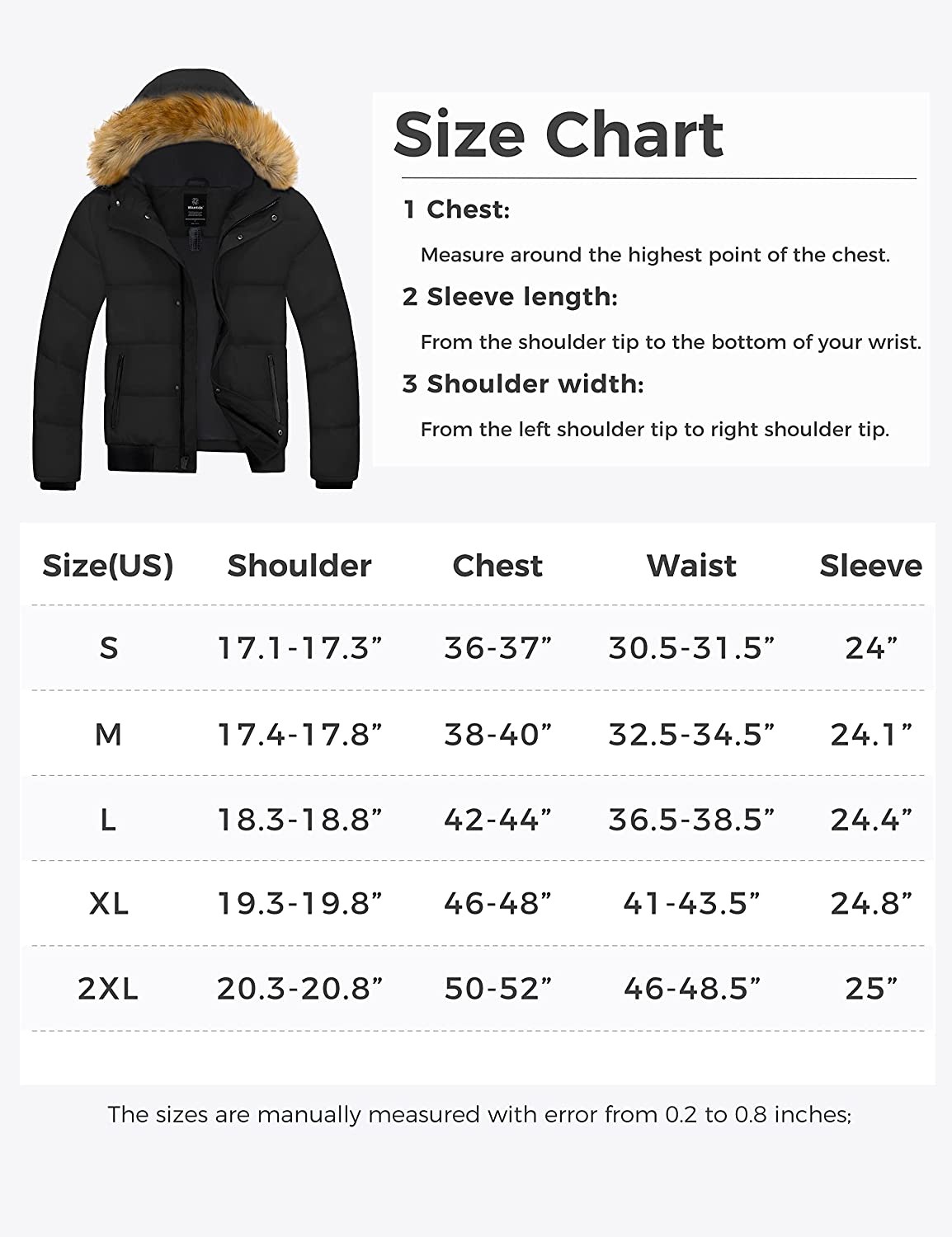 100% 400T Oxford Loop closure Keep Warm & Cozy - Wearing this men's winter jacket to stay ultra comfy during winter. The 4-layered fabric of the warm winter coat helps keep your body warmth from escaping which effectively keeps you warm while enjoying the outdoors. Stay Dry as You Explore - Don't let rain or snow mess up your outfit. These puffer jackets for men are made of dense Oxford fabric with a 3000mm waterproof rating, which keeps out light rain. Stay protected no matter where your adventures take you with men's waterproof puffy jacket. Protective Thermal Properties - Pull the attached hood of puffer jacket up to keep your ears and face warm. The winter jackets' collar, padding, ribbed elastic cuffs and hem further keep you insulated against the frost. Sleek & Classy Aesthetic - Show off your classic taste in clothing by sporting this padded puffer coat which is in a design of contrasting colors. Wear this winter puffer jackets for men when you ski, snowboard, or go on a hiking or camping vacation. Never Lose Things in The Snow - Count on this bubble jacket for men to help you enjoy the outdoors. Puffer jacket with hood for men has 2 reinforced pockets for keeping all your essentials, keys, phones, wallet, and small items safe.