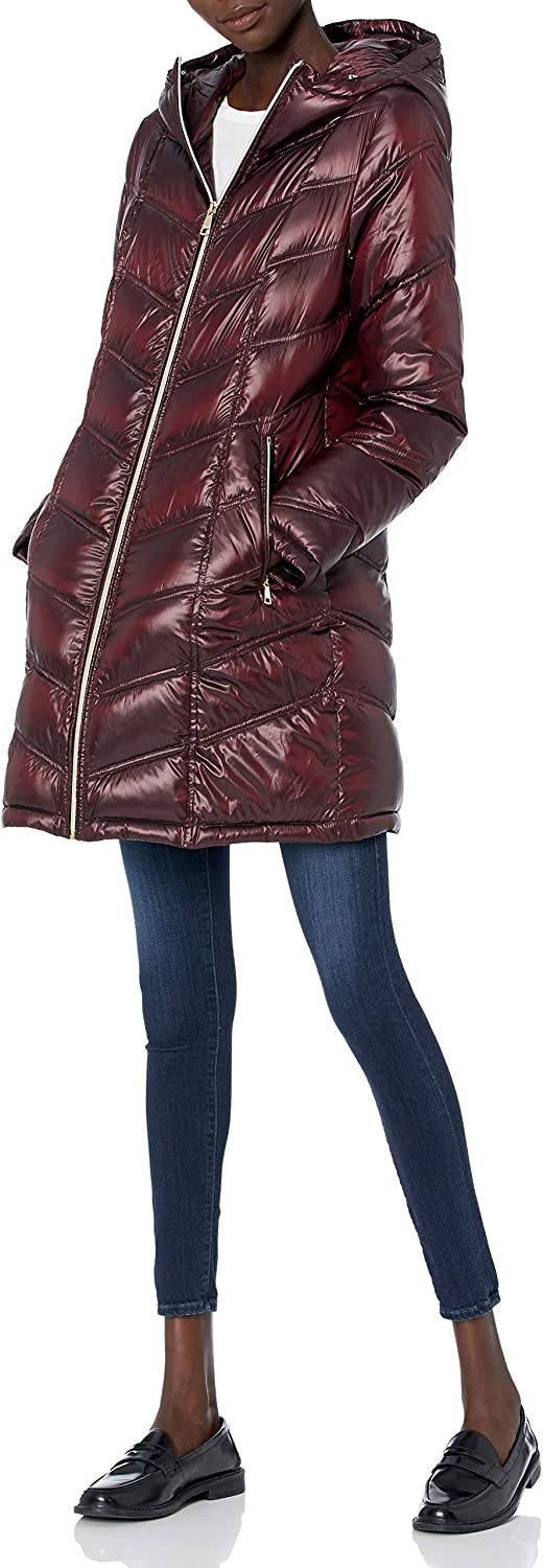 Calvin Klein Women's Hooded Chevron Quilted Packable Down Jacket (Regular and Plus)