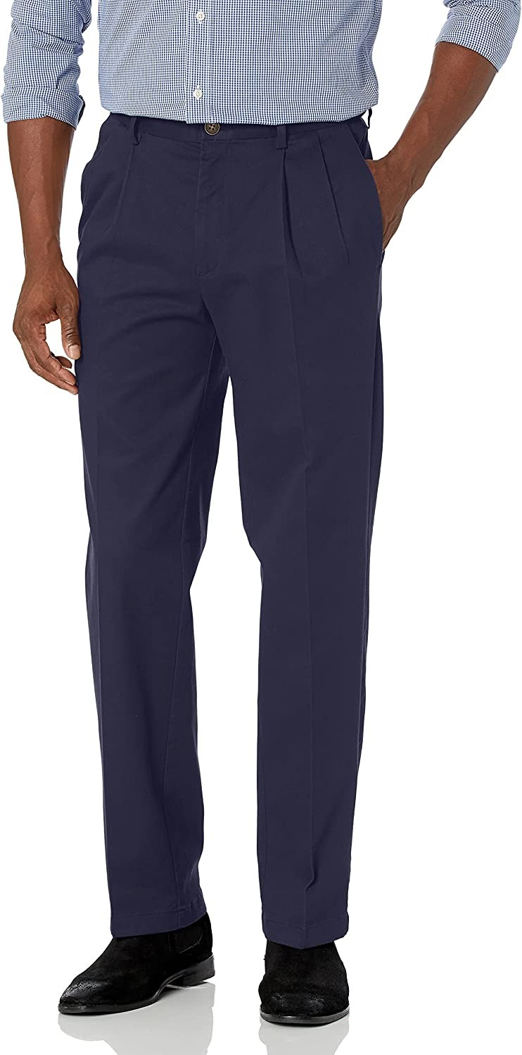 WORK TO WEEKEND PRO: This pleat front trouser delivers versatile style with many features including a hidden expandable waistband, stretch, offseam front pockets, double welt back pockets and roll hem. FABRICATION: Crafted in 98% Cotton, 2% Spandex for stretch and excellent recovery allowing your pant to maintain its shape wear after wear. STYLE: This trouser transitions between professional and comfortably casual without a wrinkle. You'll love the increased flexibility and ease of movement this cotton stretch blend provides. COMFORT: Without a doubt, this wrinkle free trouser will not hinder your comfort throughout the day. They feature a hidden expandable waistband that stretches up to 3 inches, so your pants will stay secure. Easy Care: The easy care of eliminating ironing and machine wash makes this pant the steller winner for your wardrobe!