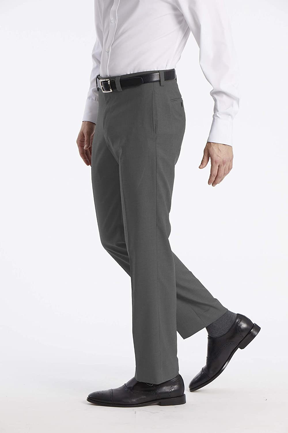 Ready to wear. Arrives with a finished hemmed to avoid extra tailoring. Updated classic fit, flat front, side pocket pant with belt loops and zipper fly. Great for your 9-5 work week, or a night out. Gently tappered, creased leg and comfort, performance fabric. Tailored between classic and slim for an up to date appearance. Multiple colors for any occasion. Pairs well with a button down and blazer.