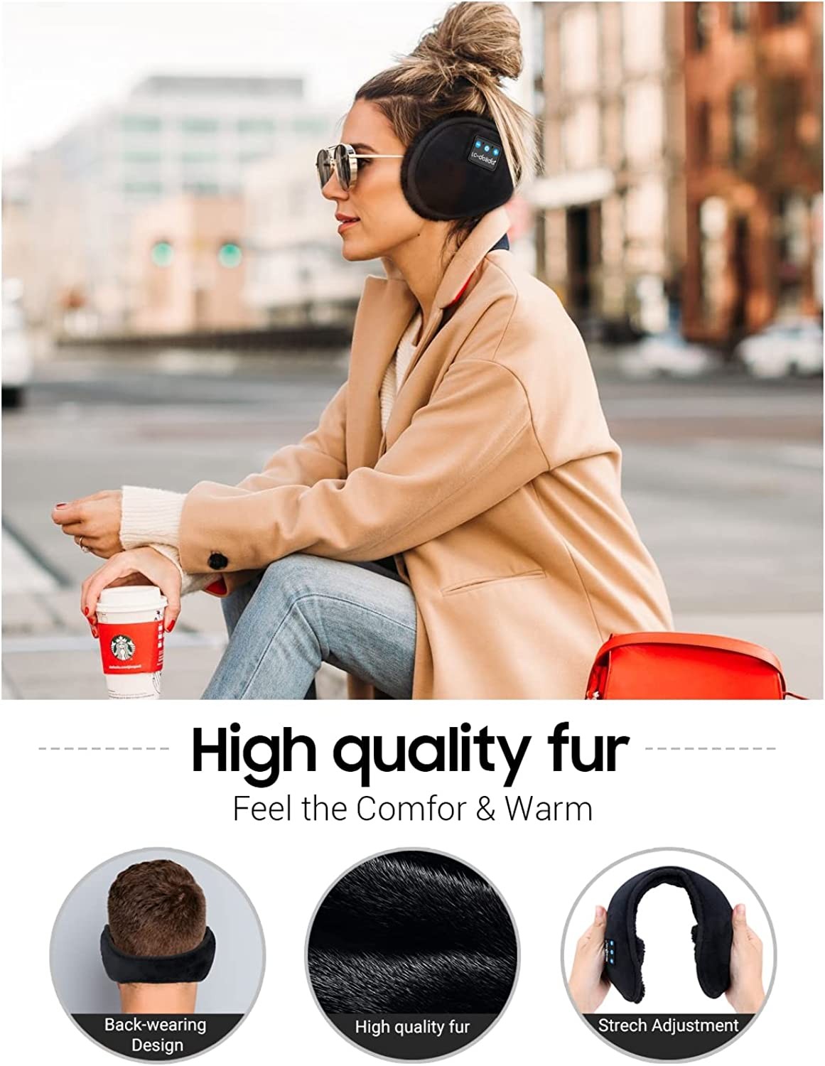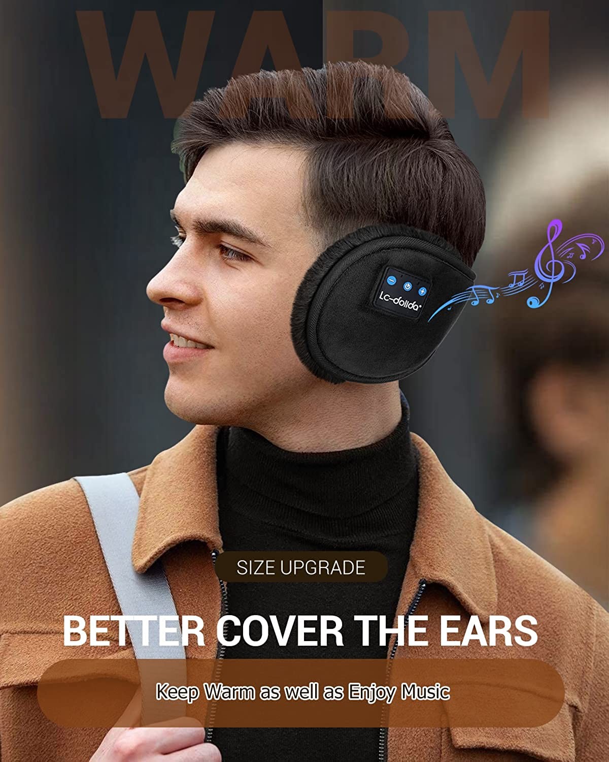 LC-dolida Earmuff Headphones Bluetooth Earmuffs Winter Heated Ear Muffs Ear Warmers Ear Muff Headband Earmuffs for Women Men/Women/Kids outdoor Biking Running Walking 进口 ♫ WINTER EAR MUFFS & BLUETOOTH HEADPHONES 2 in 1-Wanna listen to some music but ears feel frozen in the cold winter weather?Now LC-dolida bluetooth earmuffs Headphones is the pefrect choice for you! It's bluetooth ear muffs headphones,It's ear covers for cold weather!LC-dolida Bluetooth Winter Ear Muffs headphones allows you to listen to music without having to wear additional headphones and keeping warm. And the built-in microphone to let you won't miss any callings ♫ HD High Fidelity Sound Music Experience- You can enjoy enhanced music listening experience with advanced digital sound with bluetooth earmuff headphones while keep your ears warm. Delivered by high performance stereo loudspeakers, bluetooth ear muffs for men women allows you to focus on favorite music and answer calls. Bluetooth earmuffs fashion style design makes it a ideal gift or cool tech gadgets for men, women, boys, girls as a birthday gift, Christmas gifts, Thanksgiving Day's gift ♫ Bluetooth V5.2 Wireless Technology- With the Latest Bluetooth V5.2 chipset,the bluetooth ear muffs for men women connects stably with cell phones, tablets, laptop and other Bluetooth enabled devices up to 30 feet (10 meters) away. The simple 3-button Panel built-in stereo speaker and microphone, makes this musical knit cap easy to answer calls, play music, adjust volume without touching the phone ♫ Soft, Comfortable& Warm Ear Muffs for Winter - With high quality soft material outside,comfortable plush inside. The bluetooth ear muffs ear warmers will keep you comfortable and warm all the winter. Shield the wind from ears without blocking sound. The heated ear warmers are perfect for cold winter casual, hiking, biking, skiing, hunting ♫ Foldable & Washable Ear Warmers- Bluetooth ear muffs for winter men women fit all sizes and shapes, foldable adjustable, convenient and lightweight, portable. fully washable after removing the bluetooth control module and speakers out from both two ear pocket. Please make sure the bluetooth module is in the left when wearing 【Satisfied Warranty】The Innovative Bluetooth Ear Muffs with Headphones are a great winter accessory without a doubt. Best Christmas Gift Present for Family, Parents, and Friends. We provide 12 months warranty and 365 days of technical support