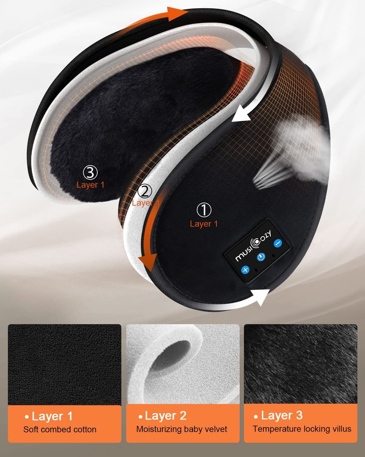 【?Bluetooth 5.2 with Louder HD Stereo Sound 】Our this model of headphone is the latest and unique one in the market! Features latest Bluetooth 5.2 technology and states of the art acoustic components that produce incredible sound quality with deep bass and crystal clear treble. The Bluetooth earmuffs headphones pair with any Bluetooth-enabled smartphone or tablet devices quicker & easier within 33 feet. 【?Upgraded Bettery Chip Paly for 10 Hours】Built-in powerfull rechargeable lithium battery, MUSICOZY Bluetooth ear muffs with bluetooth headphones only needs to be charged for 1-2 hours, the talk time/music playback time can reach 10 hours. Let us start enjoying long hours of warm music and pleasant hands-free phones during this winter. 【?Keep Ears Pretty Warm】These winter earmuffs will keep your ears as warm as body, the Bluetooth ear warmer was made of high quality imitation-rabbit-hair material, which is very powerful to make ears warm, no more worry about being cold in ears, never suffer numb frozen winter ears. 【?Soft & Comfortable】This speakers with silicone flat cover and super soft material make Bluetooth ear warmers very comfortable to wear, no pressing on the ears or back of the head. Feel ears like touching a sheep, super soft and comfortable in ears by wearing it when being indoor or outdoor. 【?Perfect Music Gifts】The innovative Bluetooth ear muffs with headphones are a great winter accessory without doubt. Extensively applicable to the skiing, biking, hiking, morning running, walking dog and other outdoor work in winter. Best birthday and christmas gifts for men, women, teenagers, boys, girls, boyfriend, wife, husband, teachers, travelers, parents and friends. Back with Musicozy's 90 days no question asked money back and 12 months free replacement service.