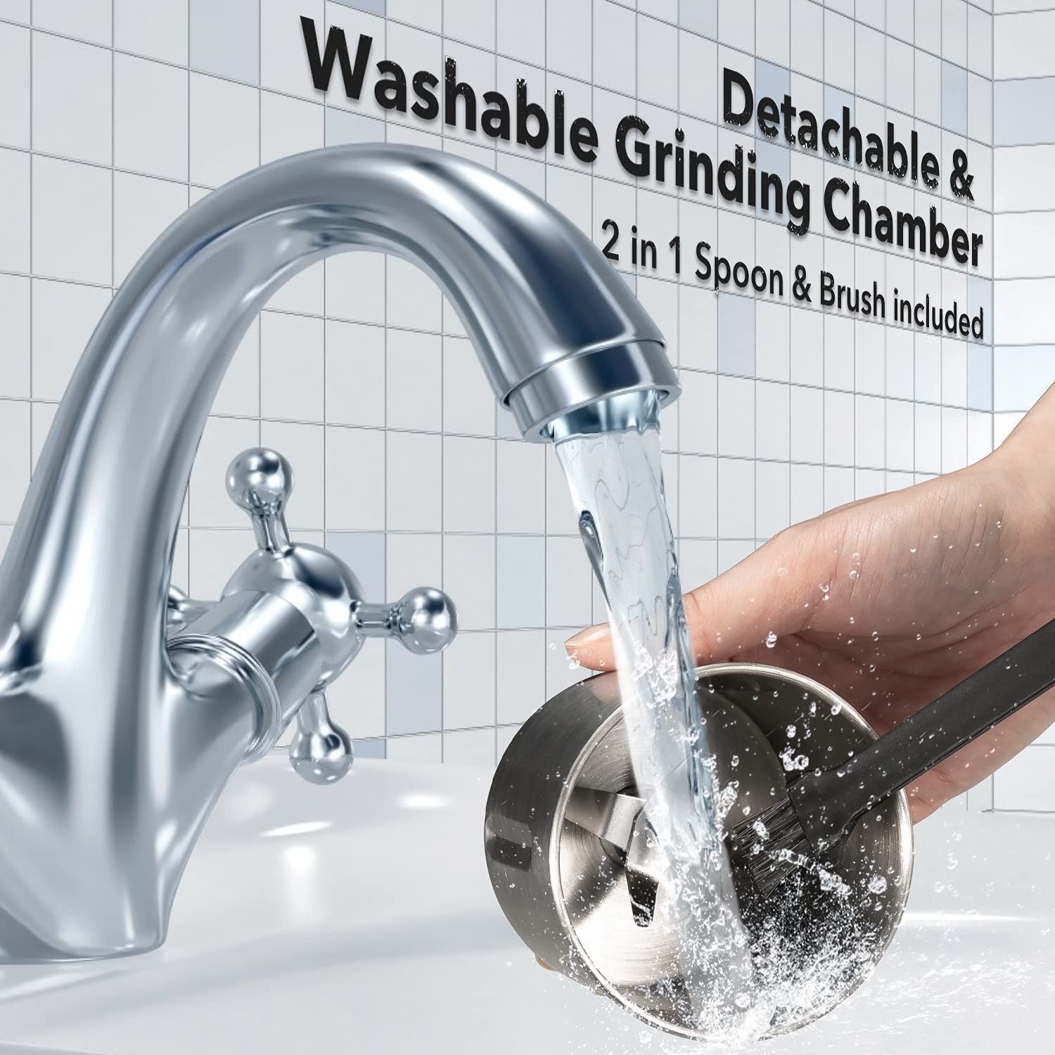【Removable Grinding Chamber】: The grinding chamber can be removed easily filling of whole beans or spices once finished, and with 2 in 1 spoon & brush you can clean up conveniently.