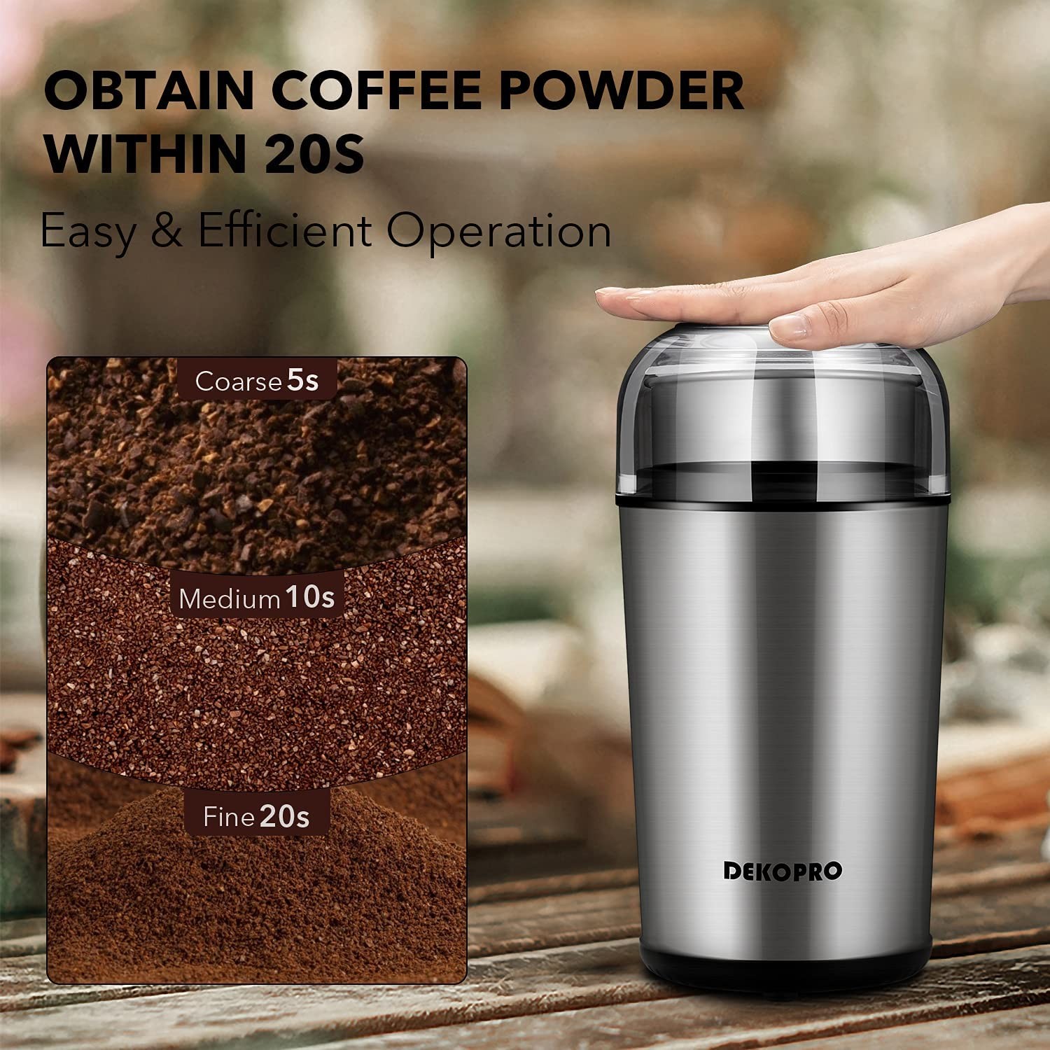 【Stainless Steel Body & Blades】: Long lasting blades made from strong and durable stainless steel will easily grind any type of coffee you like, and even better to maintain the original rich aroma and oil of the coffee bean.