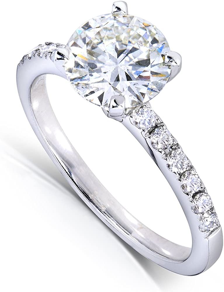 Round Diamond Engagement Ring 1 4/5 Carat (ctw) in 14k White Gold (Certified)
