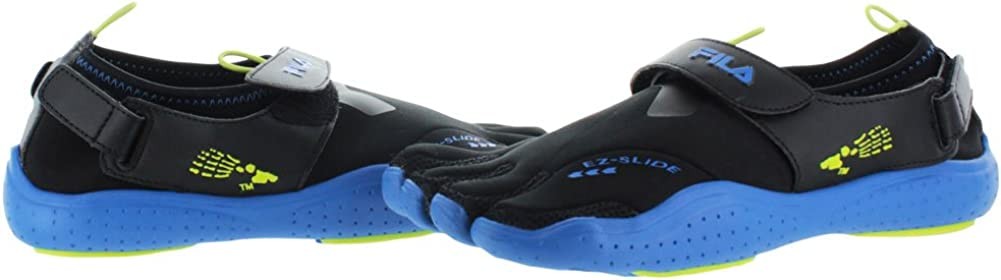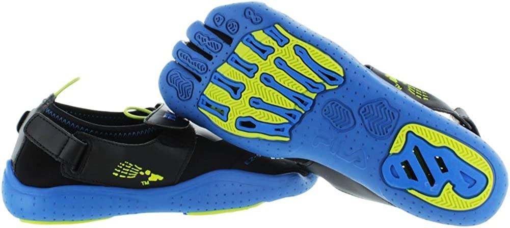 Drain Tech - These shoes have a unique design feature that allows water to simply drain through them, thus making for the ideal shoe to wear at the beach. EZ Slide - Feature that allows the foot to easily slide in and out of the shoe without socks, thanks to the shoe's utilization of fabrics and synthetic materails. Synthetic upper - Few people who want activewear toe shoes want leather, and it's because synthetic is stronger, waterproof, and will ultimately stay a whole lot cooler on the foot. Two fasteners - These Fila shoes are actually ideal for running, not only for beach-wear, and so they have a strong bungee fastener along the top, but also an adjustable fastener on the back for improved stability, comfort, and non-slip protection. Four-way stretch fabric - This beneficial feature of the Fila toe shoes means that the foot is actually cradled by stretchable fabric and mesh, not relying entirely on the synthetic upper, which creates a lot more strength and durability for long-term wear.
