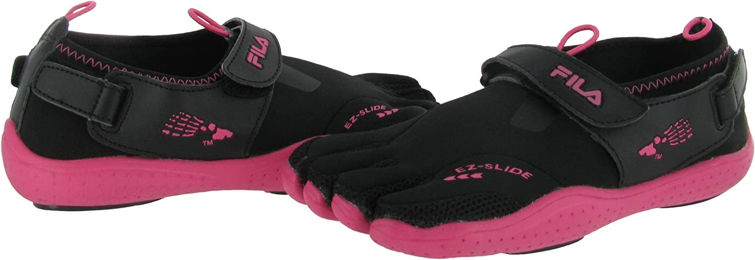 We tend to downplay the importance of toes. We shove them into small shoes and socks and pretend they don't exist when walking around or exercising. But it's time for the toe denial to end. These form fitting athletic shoes take your entire foot into account. So let your toes wiggle and be free, they've earned it. Lightweight high performance four-way stretch fabric and airmesh upper material provides cooling comfort and phenomenal support. Articulated toe box for comfort, freedom of movement, quickness and stability. EZ Slide feature combines the two smallest toes for easy wear. Bungee with hook-and-loop strap system at front and back for a secure, custom fit. Breathable and flexible synthetic upper. Drainage holes in outsole and footbed to prevent sweaty feet from getting things too soggy. Ultra-flexible cushioned EVA midsole provides support. Synthetic outsole with texture for traction. Imported. Measurements: Weight: 5 oz Product measurements were taken using size 9, width B - Medium. Please note that measurements may vary by size. Weight of footwear is based on a single item, not a pair.
