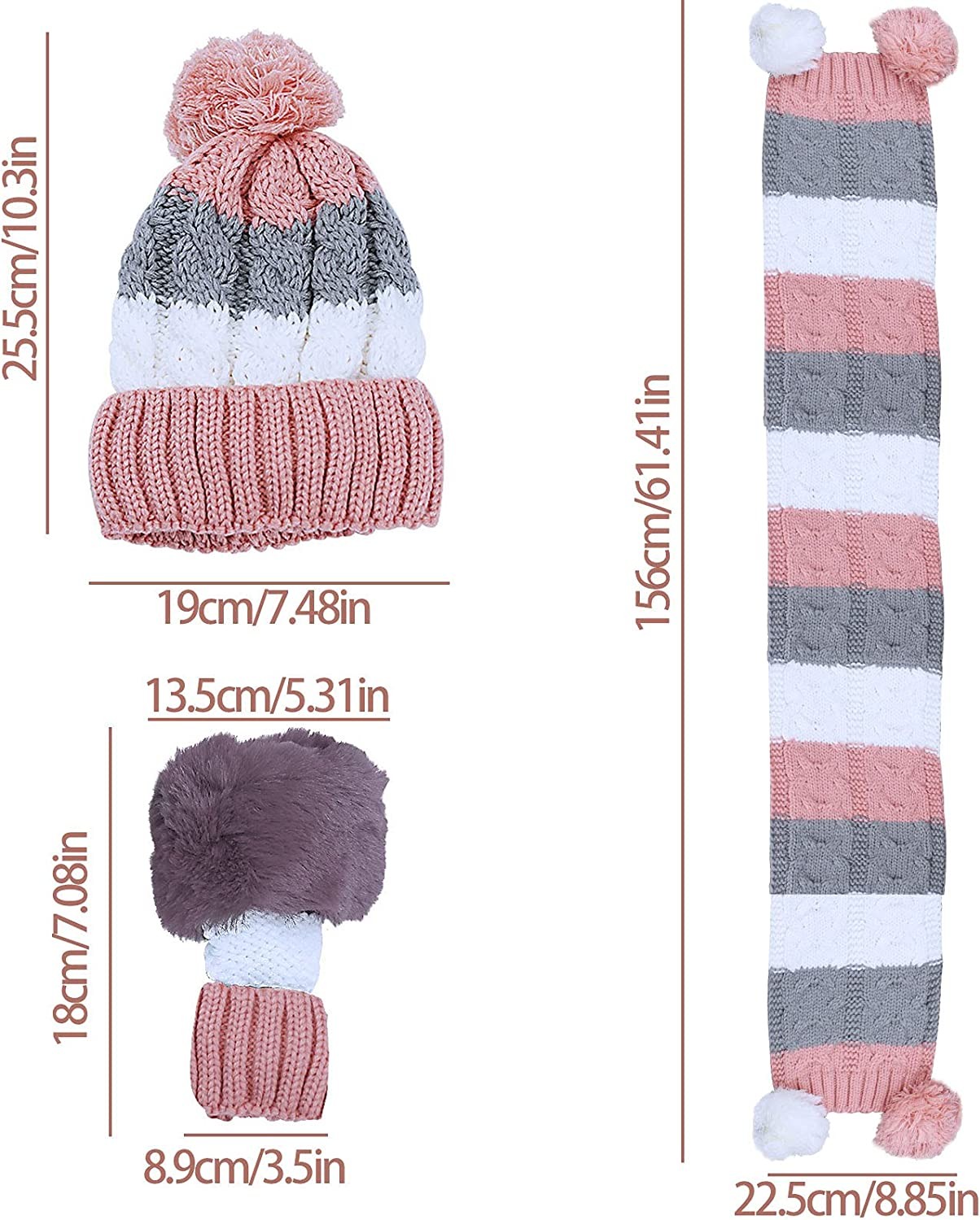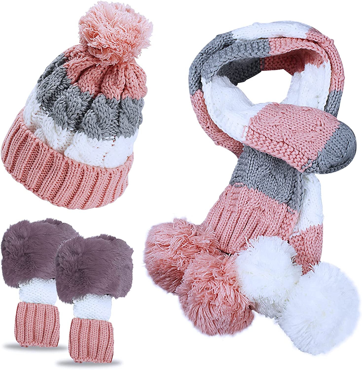 High Quality Material:100% Polyester and Faux Fur Inner Liner, Very Effective to Keep Your Head More Warmer. Windproof, Waterproof, Durable, Equiped With The Quality Windproof Shell, The Winter Knitted Hat Scarf Gloves Set is Perfect For Outdoor Sports or Snowy/Windy Weather In Cold Winter.