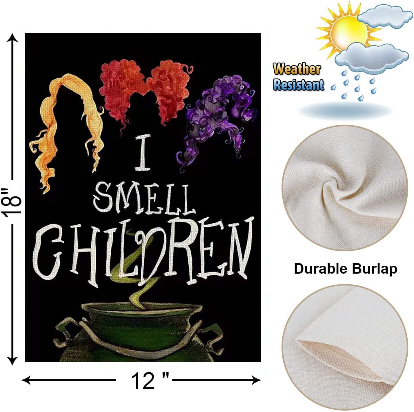 【Halloween Flag 】This Halloween garden flag is made of burlap material, with bright and vivid colors, and are UV, fade resistant characteristics. Design is double sided with the image printed and visible from both sides and text also reads correctly from both sides. 【High Quality Fabric】Made of washable burlap which is weather resistant as well as fade-resistant. The christmas garden flag is also double stitched all around so that it will last season after season outside in sun. 【Easy To Install】This garden flag is 12.5 x 18 Inches which is easy to carry, lightweight and durable, and fit all standard sized garden flag pole stand.(ONLY GARDEN FLAG,FLAG STAND NOT INCLUDED) 【Outdoor Garden Decorations】This Halloween flag can perfectly decorate your garden, deck, terrace, porch , or balcony, and amaze anyone who passes by your backyard or garden. 【Best Service】We pay great attention to the buyer's experience. If you have any problem with the product, Please contact us directly and we will offer the friendly customer service.