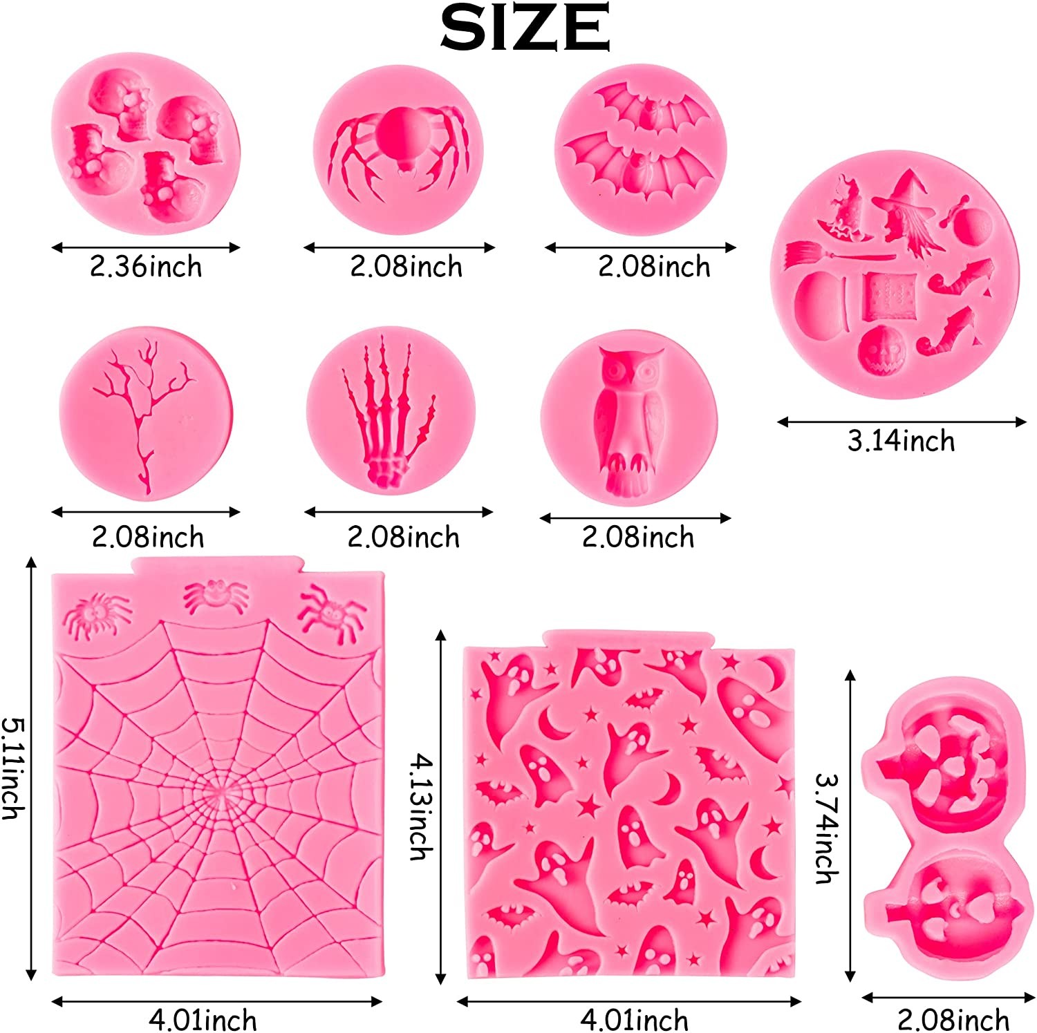 Super Value Set: You will get 10 pink Halloween fondant molds of different shapes, such as ghosts, witches, skulls, pumpkins, skull claws, bats, dead branches, spiders, owls, spider webs and other patterns, with rich styles, it will meet your various culinary needs and create different styles of cakes.