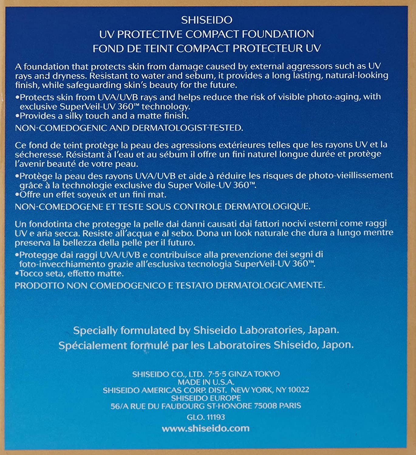 Shiseido UV Protective Compact Foundation SPF 30, Medium Beige SP60, 0.42 Ounce