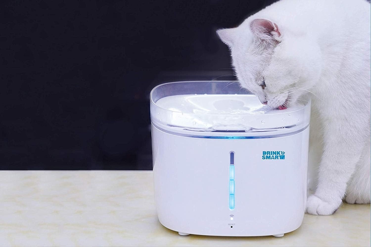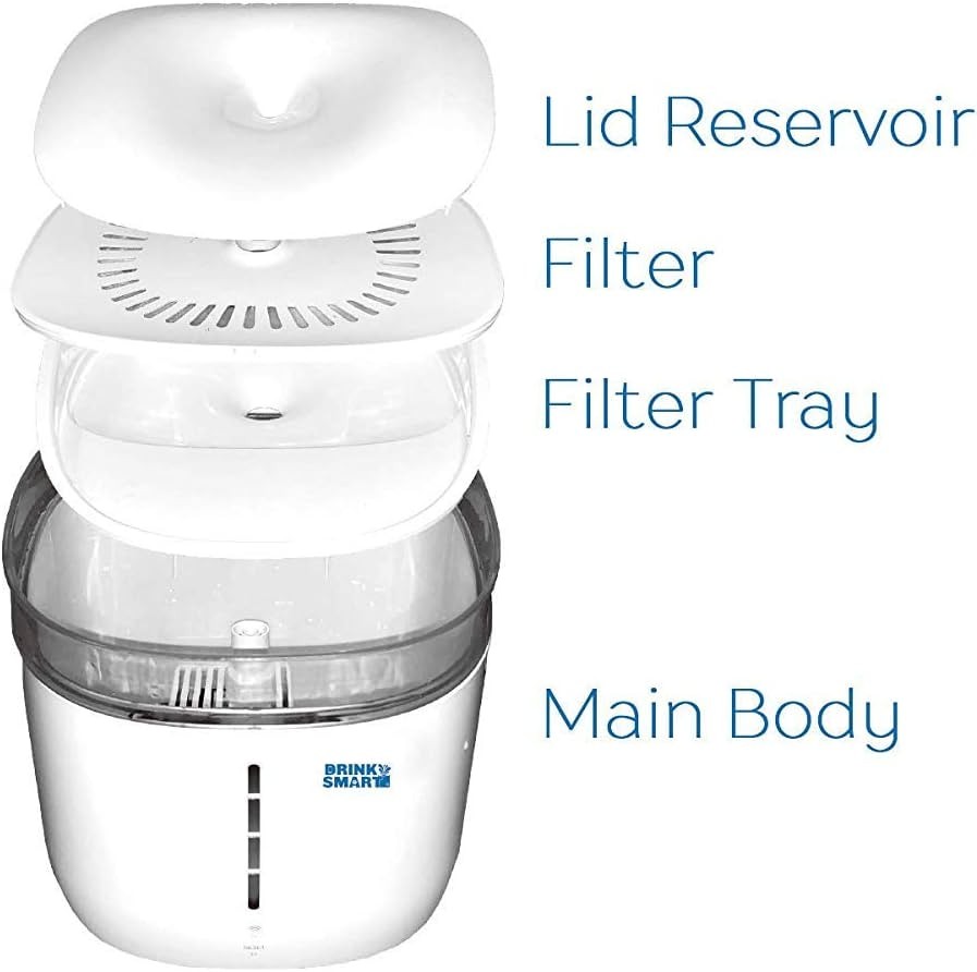 SMART APP REMOTE CONTROL- The Drinksmart water fountain for pets is App controlled and can control the fountain remotely to turn it on/off so you never forget to leave water for your furry friend again! The App tells you if the machine is running, what the water level is, alerts you to low water levels, reminds you to change your filter, and more! Set up is fast and easy! Holds Lots of water! The Drinksmart pet water fountain bowl holds 2 Liters of water so you won't need to refill your water so frequently and your pet will have PLENTY to drink! The Drinksmart pet water dispenser also has a convenient 2 bowl design so you can leave the base plugged into the wall and remove only the insert bowl to refill at your sink. When finished refilling, simply put the water bucket back into the base and machine is again ready for use! VERY QUIET! The Drinksmart smart pet water fountain has a super quiet motor so that it will not disturb you or your pets. Very Safe! Our pet water dispenser bowl is made from BPA free, non toxic and odorless materials while the tube and pump mount are made from food grade silicone.Our automatic pet water dispenser also has an automatic shut off feature- if the app is alerted to low water level, the fountain will turn off automatically to prevent the pump from burning out. UNIQUE 3 STAGE FILTRATION/PURIFICATION SYSTEM- Fine screen mesh Effectively traps hair and solids from coming up through the water supply. Activated Carbon Effectively removes odors, bad tastes, chlorine, and particles. Ion exchange resin filter effectively purifies the water making it clean, delicious, and safe for your furry friend to enjoy!! Unique design only exposes a stream of water at any given time keeping water much cleaner than other fountains. Sleek Modern design will make the Drinksmart automatic pet water dispenser fit nicely in any space you have. machine comes apart very easily making cleaning it a breeze! Replaceable filter and pump sticker included in the box. CUSTOMER SATISFACTION GUARANTEED! At Felix & Fido we stand behind our products- if you are not happy for any reason, we promise to make things right!