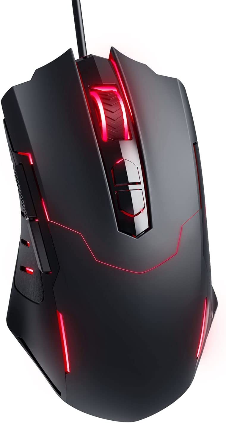Wired Gaming Mouse, Tmaine Optical PC Gaming Mice with 16.8 Million RGB LED Backlit, High-Precision Adjustable 7200 DPI, 7 Programmable Buttons, Ergonomic USB Mouse for Windows/PC/Mac, Black