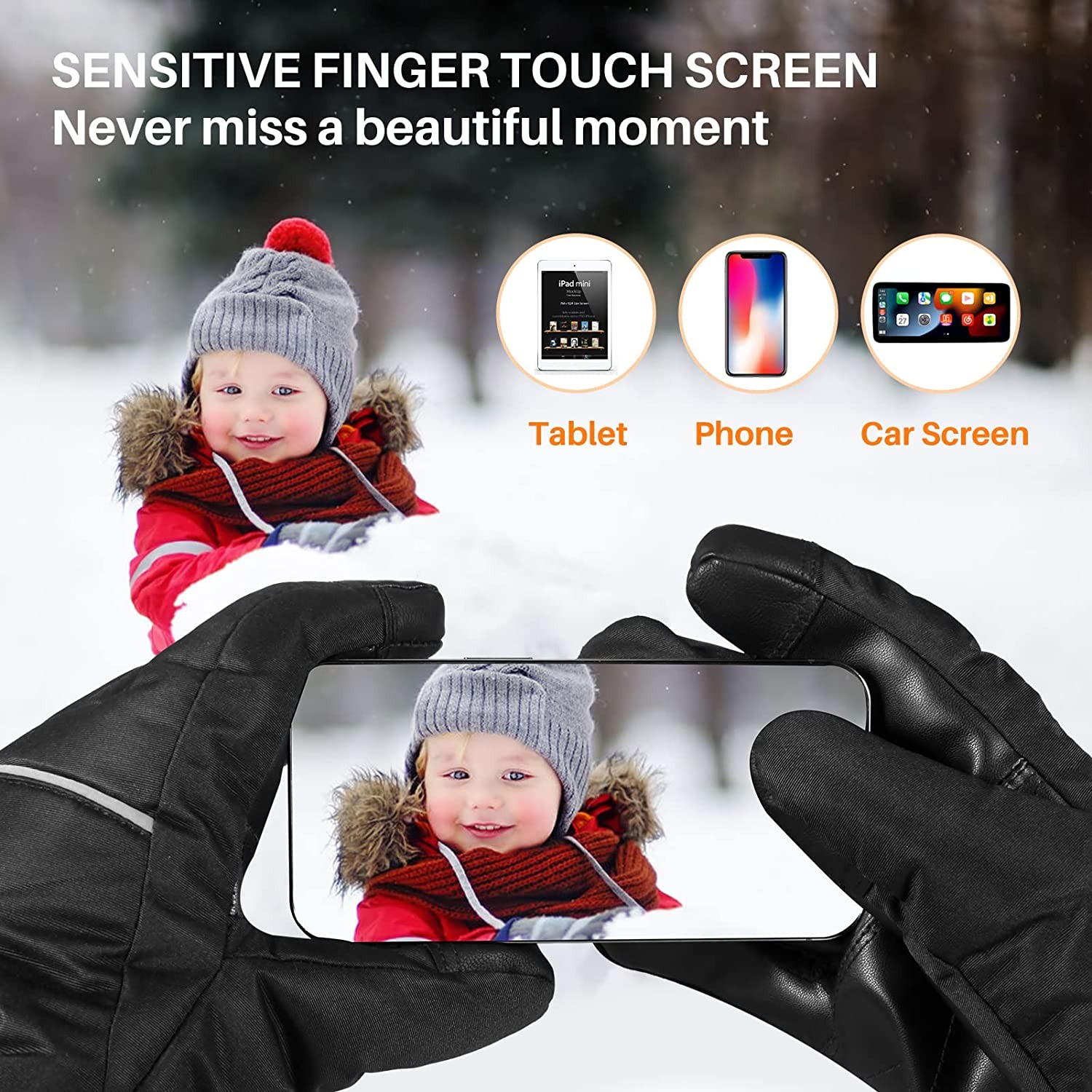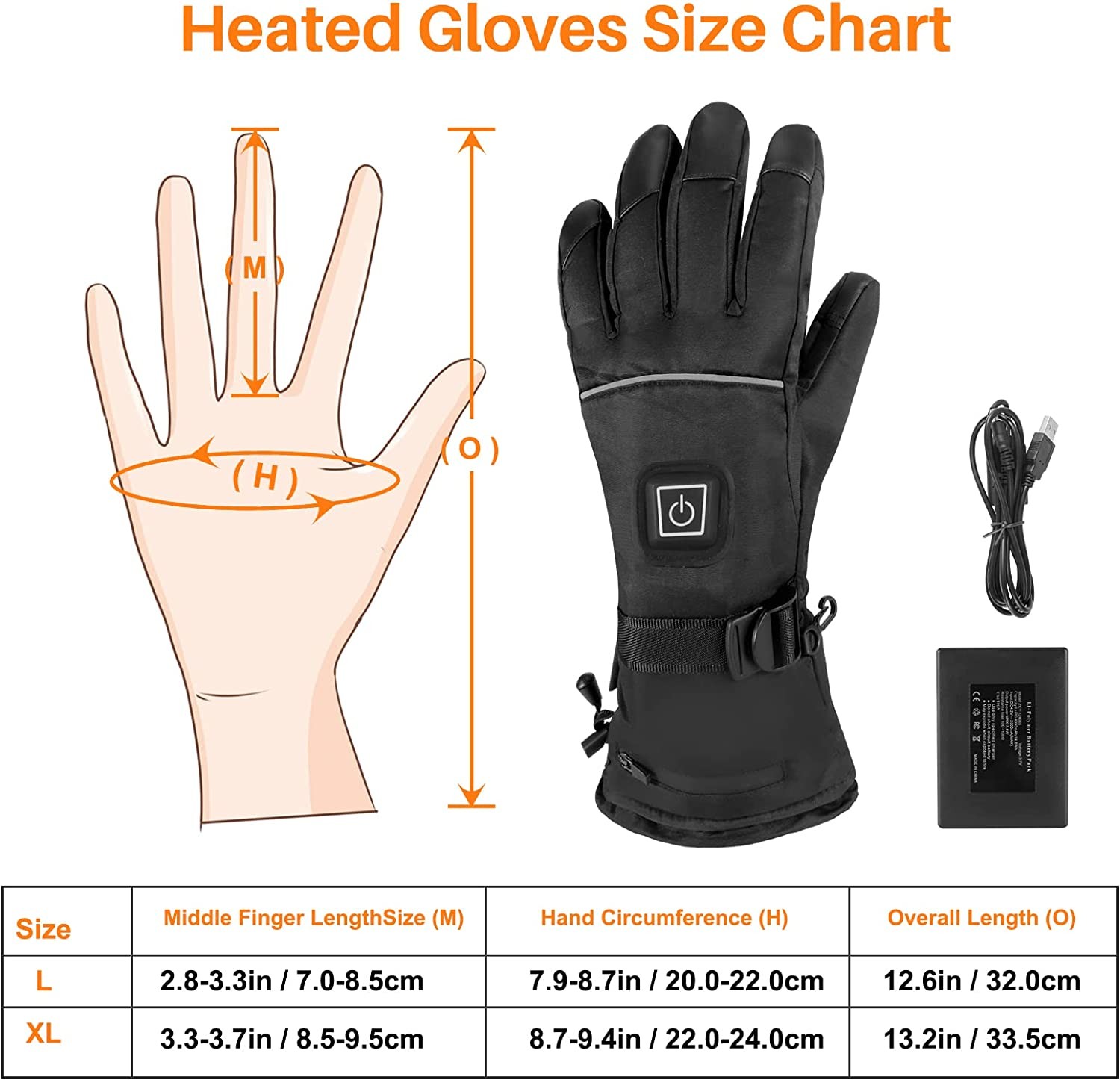 Polyester and Leather Imported Three Heating Modes: Heated gloves liners for women/men has 3 heating modes, you can choose the appropriate heating mode according to different temperatures and scenes: red LED light is high temperature setting(131-140°F /4 Hours), white LED light Moderate setting (113-131°F /6 Hours), blue LED light set to low temperature setting (104°F /8 Hours). All-round Heating and Warmth: The back of the electric heated gloves and the fingers are covered with heating elements, press the switch for 3 seconds to turn on, and rapid heating only takes 30 seconds to warm the entire palm and fingers. Winter motorcycle heated gloves interior is made of soft fleece, which is comfortable and the breathable material will not make your hands sweat. Sensitive Touch Screen Design: The warming heated ski gloves has screen touch function, the thumbs and forefingers are coated with conductive leather, you can use electronic devices such as mobile phones, iPad and navigation screens without taking off the heated glove, which is not only convenient, but you can also use your mobile phone to record every wonderful moment in time. Wind Resistant and Waterproof: Waterproof thin heated gloves are made of high-density synthetic material, the ten fingers are made of waterproof leather, which can keep the interior dry even in wet outdoor conditions, and is resistant to light rain and snow. Adjustable buckle wrist straps and drawstring closures prevent snow or cold air intrusion, womens work heated glove is wind resistant and non-slip. Rechargeable Heated Gloves Include: 2 4000mAh Rechargeable Li-Ion Batteries, 2 Rechargeable Heated Gloves, 1 USB DC cable , 1 User Manual, 1 Gift Box and 12 months warranty.Battery heated gloves is available in L and XL for men and women. A warm gift for yourself, loved ones, friends, parents, elders, and enjoy the outdoors in winter.